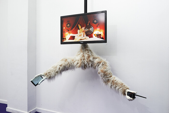 On a recent episode of The Astrology Podcast, astrologer Chris Brennan and his guests reflected on the United Astrology Conference, held in Chicago in 2018, and noted a pronounced generational shift. “The Pluto-in-Scorpio generation has landed,” remarked occultist and astrologer Austin Coppock, referring to the surge of conference attendees born between November 1983 and November 1995. Visiting Madison Bycroft’s semiotically maximalist show “Gong Farmer, Shit Stirrer and the Maiden of Grief”—with its immersive fields of sculpture and smoke, furniture and video, combining the mundane and the mythic—I wonder whether the Pluto-in-Scorpios have landed in contemporary art as well.