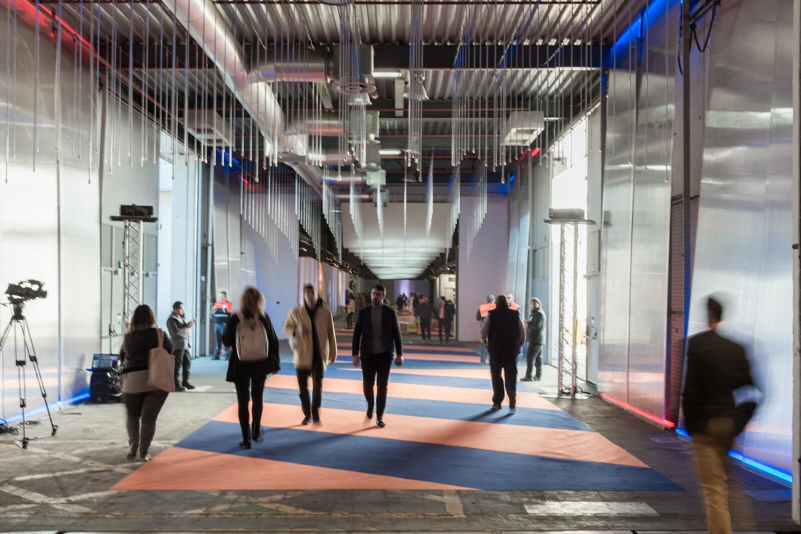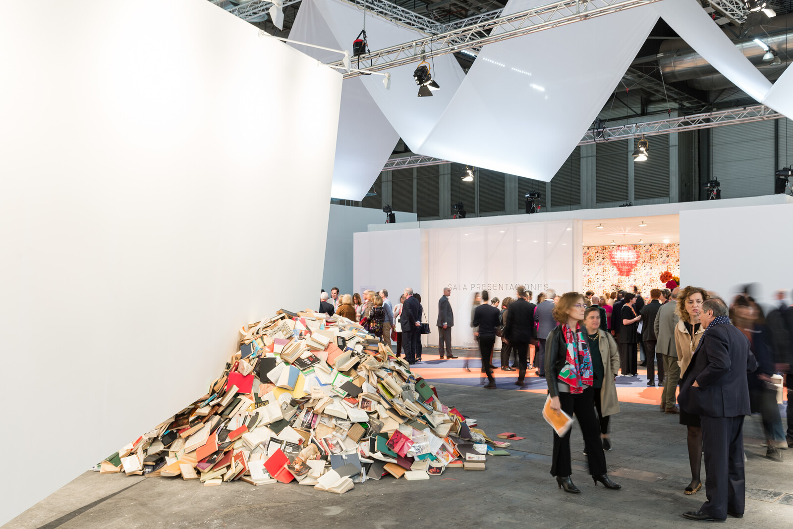 “Slightly shattered shards of substance thrown within the grasp of the current of a river / Ligeramente dañados pedazos de sustancia arrojados a la merced de la corriente de un río”: you read Lawrence Weiner’s writing in English and Spanish splattered across a wall as the flow of humans drags you through the endless booths of the art fair. (Was it Galería Horrach Moya from Palma de Mallorca? The tide moved too quickly to catch it.) You’re not sure if you’re the shards or the art is or you both are, but you know that the river is ARCOmadrid 2019. Spain’s biggest art fair has distinctive qualities. The giant convention center simultaneously hosts an air-conditioning convention, a huge concentration of Latin American galleries, planeloads of VIPs flown in for private conferences, along with a scatter of curated sections trying to find distinctive voices amongst the glut all the other fairs. Frieze LA last week, Armory next.