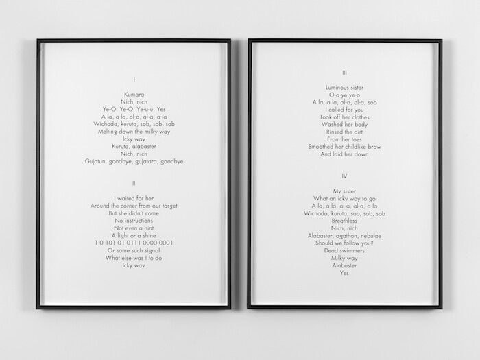 The work is by the Swiss artist Mai-Thu Perret, and takes its name—Les guérillères XII (all works 2016)—from the influential (one can scarcely say “seminal”) 1969 novel by Monique Wittig, which imagines a new society established and run by lesbian warriors. In the original French, they are described as “elles,” not “women” but a differently universal “they,” a simple inversion of the masculine collective pronoun “ils” one usually finds in French; Perret’s own narrative of a female commune, The Crystal Frontier, which she has been writing—and making artwork from—since the late 1990s, might be considered a similarly speculative reversal and, like Wittig’s own work, is not based upon any sense of gender essentialism.