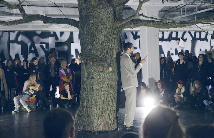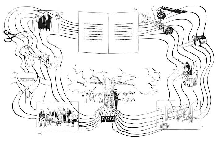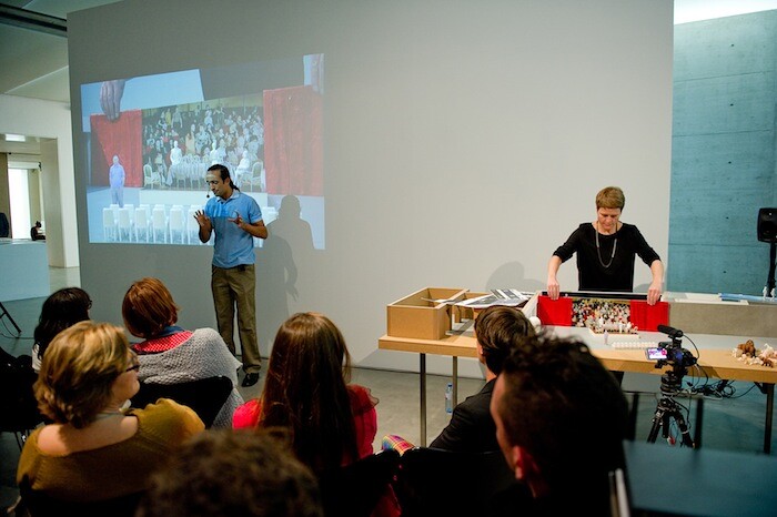 We don’t think about us Producing work for an audience. I think we are first already each other’s audience. We think we are much more of a sect-like organization. We bribe people To get involved. We think there are different levels of engagement. There are people we employ directly Who are on the payroll. There are people who are implicated Whether they want it or not. There are people who produce relationships in turn Have their own understanding of the work. That’s how we think The work lives in the world. Which is why we’re concerned We’re cautious About this kind of conversation. We’re cautious not to close down (Short-circuit) Not to impose A final voice.