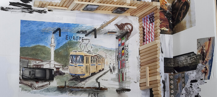 In 2006, French filmmaker and polymath Jean-Luc Godard was commissioned to curate an exhibition at the Centre Pompidou, devising a series of 18 maquettes—nine large, nine small—as a plan for “Collage(s) de France: Archaeology of the Cinema.” The exhibition would link a series of rooms—each with its own title, like “Myth (allegory of cinema),” “The Camera (metaphor),” and “The Real (reverie)”—featuring objects, artworks, and videos. The result would be a kind of funhouse excursion through the director’s major themes and obsessions: cinematic and media images, the patrimonies of Europe, Hollywood, and their cultural and ideological peripheries.