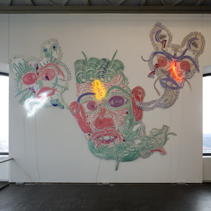Beyond invoking metamorphosis as a process that resists stratified bodies—be they literal flesh or corpuses of knowledge—the exhibition entreats the visitor to “let everything happen to you.” Instead of thinking like a flower, the grand conceit here seems to be that we consider ourselves more like bees who cross-pollinate ideas, memories, and experiences in an attempt to find more sensual and symbiotic modes of adaptive relations.