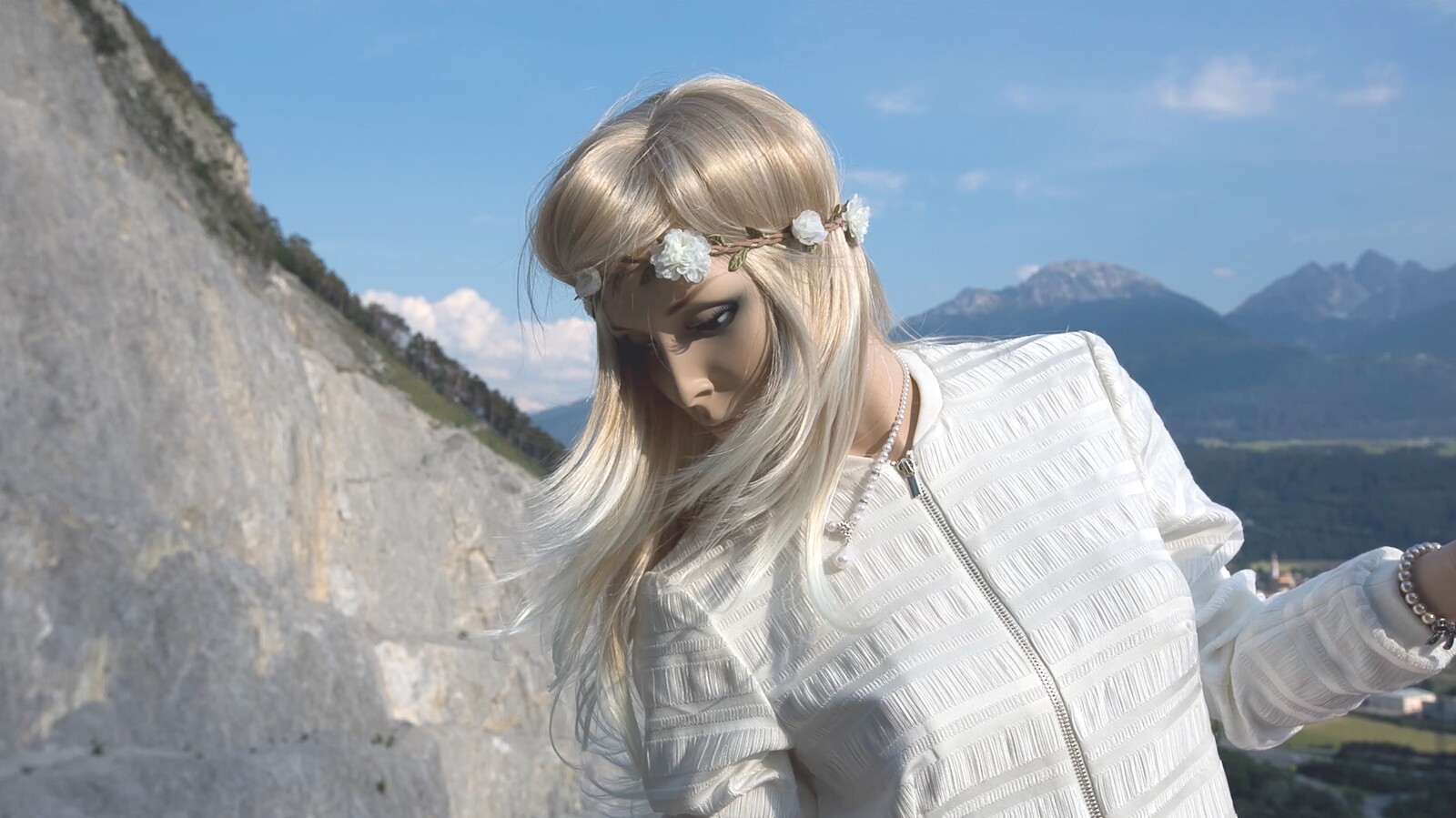 What else? Mannequins toppling from cliffs in John Miller’s disquieting Mannequin Trilogy (2016–20) converse with Bas Jan Ader’s exquisite falls from the roofs of suburban homes, among other places, in Falling Films (1970–71). Cindy Sherman’s stop-motion paper doll in Doll Clothes (1975) and Oliver Laric’s post-human hybrids in Betweenness (2018) and Untitled (2014) operate somewhere between dressed and undressed, human and non-human. Isaac Julien’s well-known Baltimore (2003) tracks the real-life Blaxploitation actor and filmmaker Melvin Van Peebles and a female “Afro-Cyborg,” played by Vanessa Myrie, as they journey through several of the city’s cultural sites, most notably the National Great Blacks in Wax Museum. When Van Peebles encounters his own wax statue, he stands as if unsure what to do when confronted with the frozen image of himself.