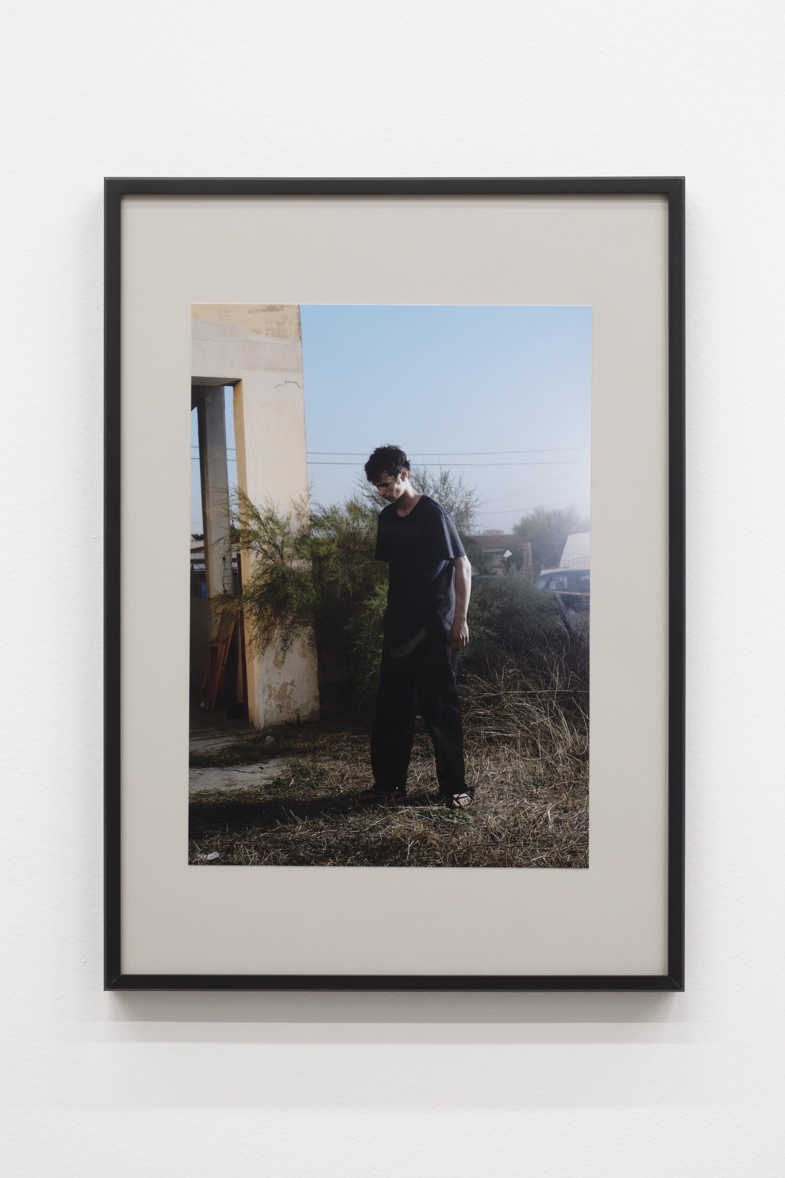 Emanuele Marcuccio’s “Dream pop,” at Lodos, takes on scenographic themes in a more subtle yet effective way. The show is succinct: only a few components lead the spectator to figure out they are standing in a set—though what the set is for remains unclear. Half the walls are covered in kraft paper, indicating the crafty quality of most props, but also cleverly creating a visual divide, an inside versus an outside. Right on this division hang four pictures, collectively titled “Sugar rush” (2022) and created by Marcuccio with fashion photographer Marc Asekhame.