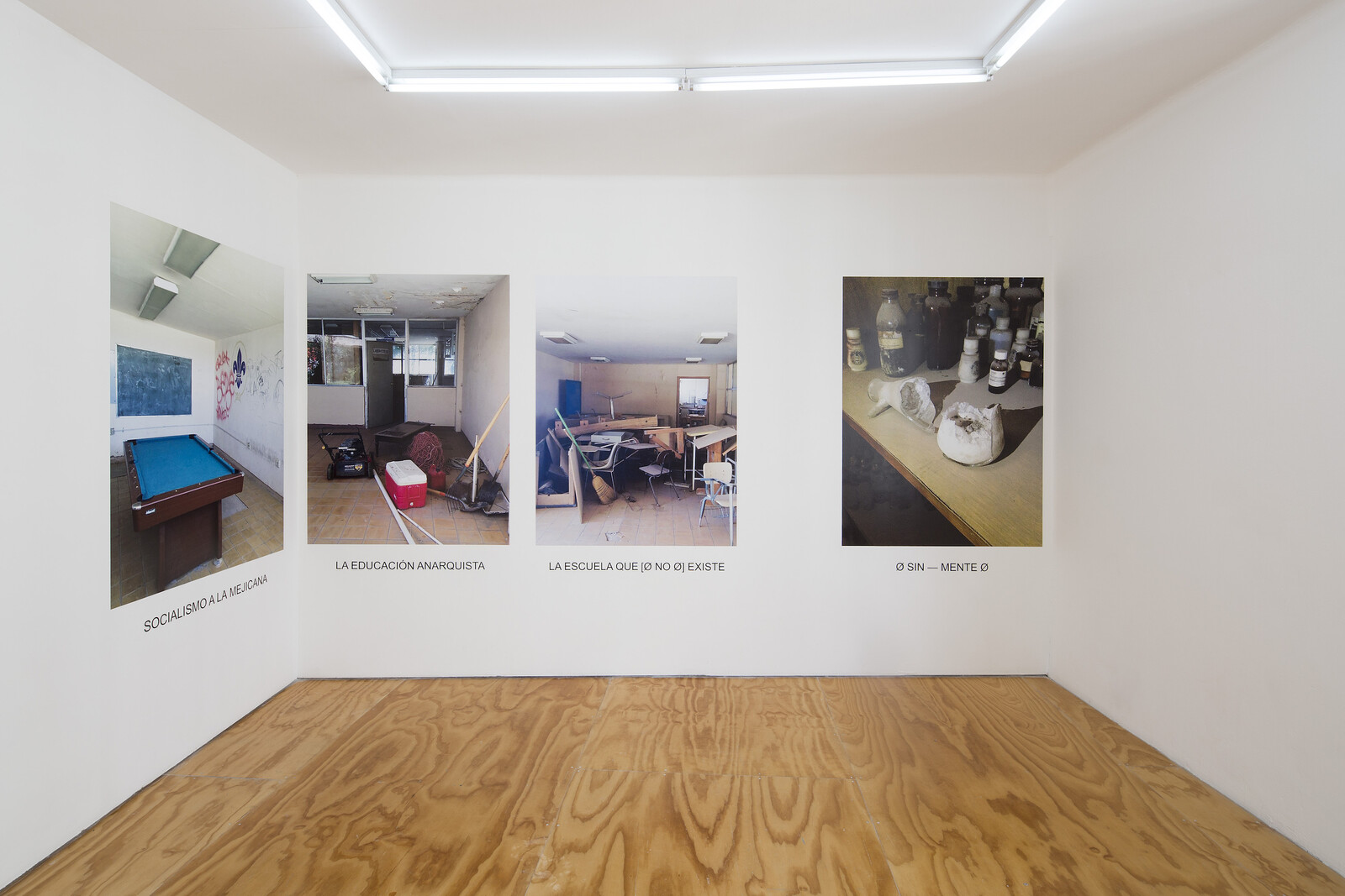 This year’s Art Week also featured a smattering of new satellite fairs, most notably Feria Maroma in Roma Norte, and La Feria de la Acción, a small experimental fair held in a former flour mill factory in Tacuba. Inside Edificio Humboldt, Centro’s famed art deco building, Lodos Gallery presented Diego Salvador Ríos’s exhibition “Vistas del Arkivo Altavista” [Views from the Altavista Arkive]. In 2014, the Chilango artist visited Preparatoria Altavista, a cooperative federal high school established in the city of Juárez, Chihuahua, in 1967. Ríos, along with the teaching staff, assembled various documents and ephemera associated with the school, including films, photographs, and school banners. The show offers a rare outsider’s perspective on the cooperative high school, reframing its archive as a personal retelling of the institution’s history. Downstairs, in their office space, the art magazine Terremoto presented “Involuntary Archived Theatre of Surveillance,” a project by Miguel Fernández de Castro that presented documents hacked from the Arizona State Police and Border Patrol in 2011. The result is a random selection of images, from family portraits to police crime photos to propaganda postcards to interrogation documents, foregrounding clear evidence of institutional racism.