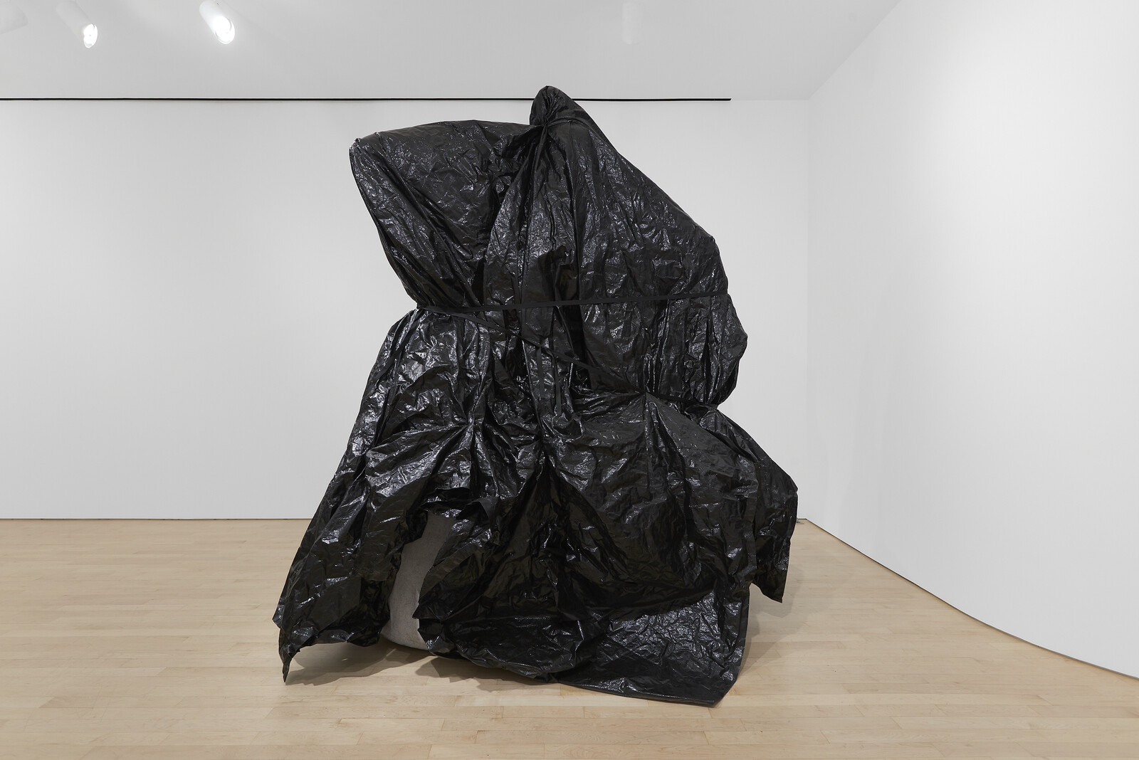 It is perhaps the most tired, abstract, and mute of Rakowitz’s monsters, then, that speaks the loudest in response to the ongoing demand that all monuments must fall. In its looping cycle of surge and collapse, the massive inflatable Behemoth would seem to quite literally compress the timescapes that have seen these statues rise and fall. But in referencing the temporary coverings laid and strapped over public monuments as their fate is debated by city councils and advocacy groups, it also adopts all the ambivalence of that state of provisionality, wherein the proceedings of social dissension and official national response are stalled, the promise of historical reckoning deferred. Behemoth, and other works in the show, for that matter, aren’t quite counter-monumental proposals or blueprints—as the titular “maquette” might suggest. Yet they do metabolize a feeling: that history’s monsters are not to be exorcised, they’re yet to find their final form. Rather than erect new monuments in the place of their toppled predecessors, Rakowitz has suggested, we could keep only their marble bases, the wreckage, the debris, graffitied and scrawled upon by protesters. Like a fable, the moral would lie out in public, for all to read.