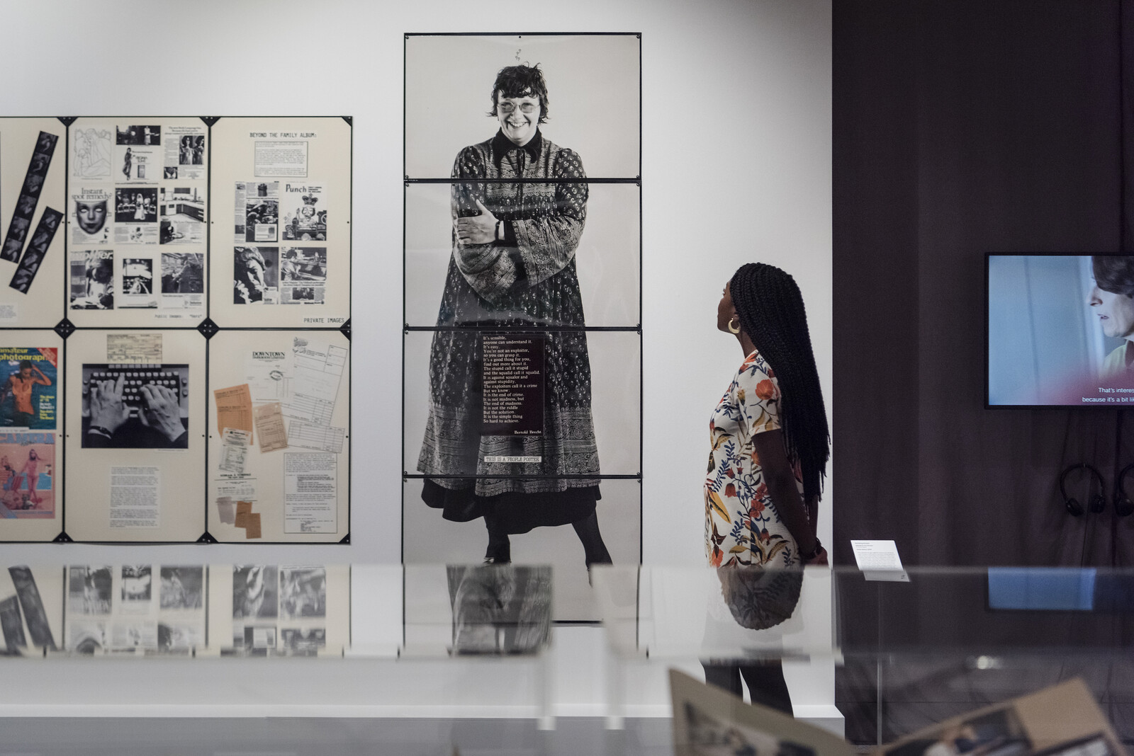 Spence’s autobiographical artwork Beyond the Family Album (1979) takes the conventional form of the family photo album—photographs and press clippings are affixed to large sheets of paper, accompanied by captions and extended passages of text—but subverts the form by manifesting as a counter-archive of the self. By charting her divorce, her parents’ ill health, and her own struggles with chronic asthma, in addition to interrogating the invisibility of women’s domestic labor and damaging representations of class, gender, and sexuality in the media, Spence sought to “represent the un-representable”.1 Her politicized and confrontational style was designed to be both pedagogic and emotive: formulating a new pictorial language that reclaimed control of the image of the female body. “Much of my [work] has been described as in ‘bad taste’, ‘unsuitable for galleries’, ‘revolting’, ‘ugly’, ‘narcissistic’ and ‘obsessive’: pejorative and dismissive words, presumably spoken because of thwarted expectations of the viewer/critic who might prefer to continue to consume the female body.”2 The series “Phototherapy” (1984-86), a collaboration between Spence and Rosy Martin, demonstrates how they adapted co-counseling techniques by performing and re-enacting traumatic memories through photographic narrative and montage in order to develop agency over their pictorial representation.