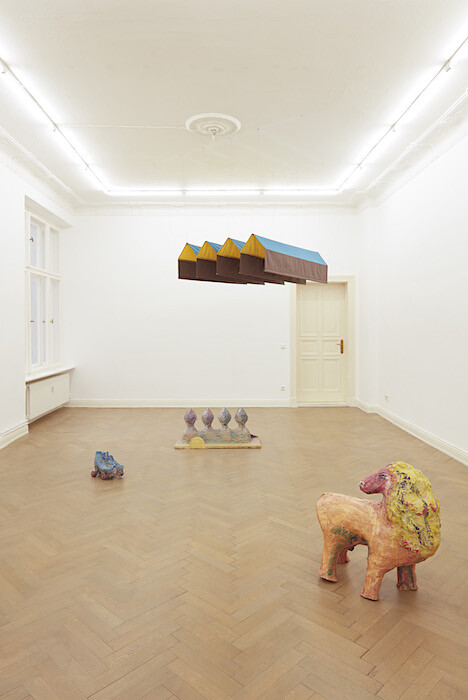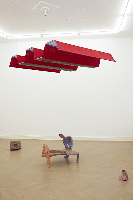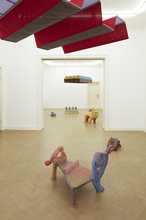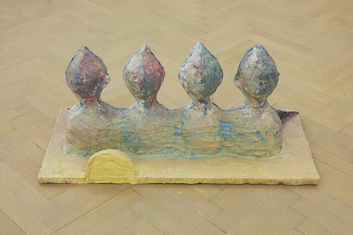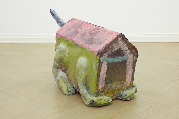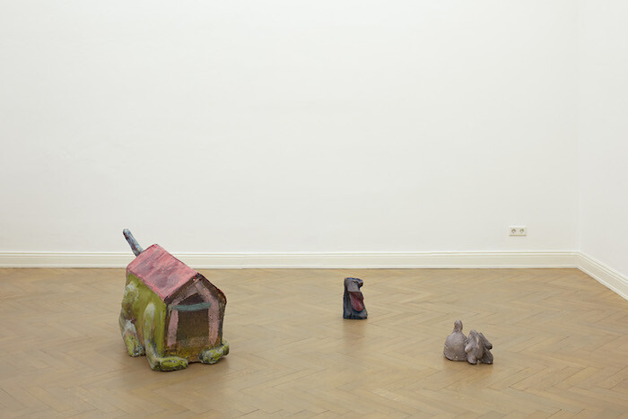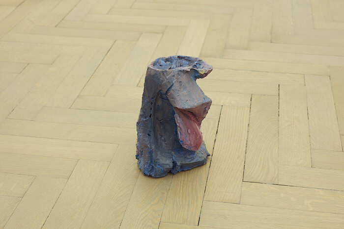 But the transgression of formal boundaries could also be seen as an emancipatory project—politically as well as aesthetically. Since high modernism, and by extension contemporary art, have been mostly purged of mutant morphologies, in order to find an obvious precedent for the work of Musa paradisiaca, one would have to look into clay animation and the conventions of plasticity it champions. Here distortion signals a surplus rather than a lack. Not confined to actual physicality, the pastel-colored blobs in the gallery also have the haunting quality of folk tales figures, in which household appliances and familiar objects typically represent social forces made into human-like form.