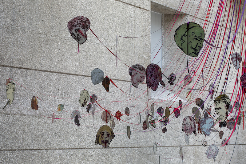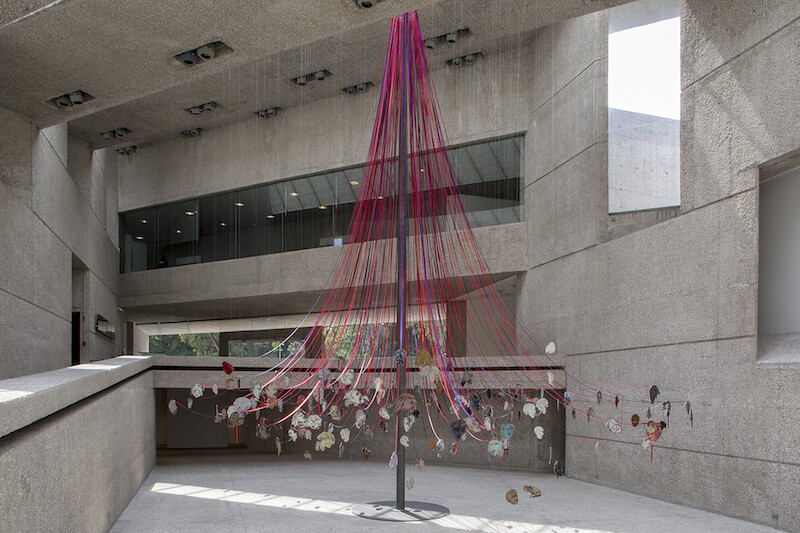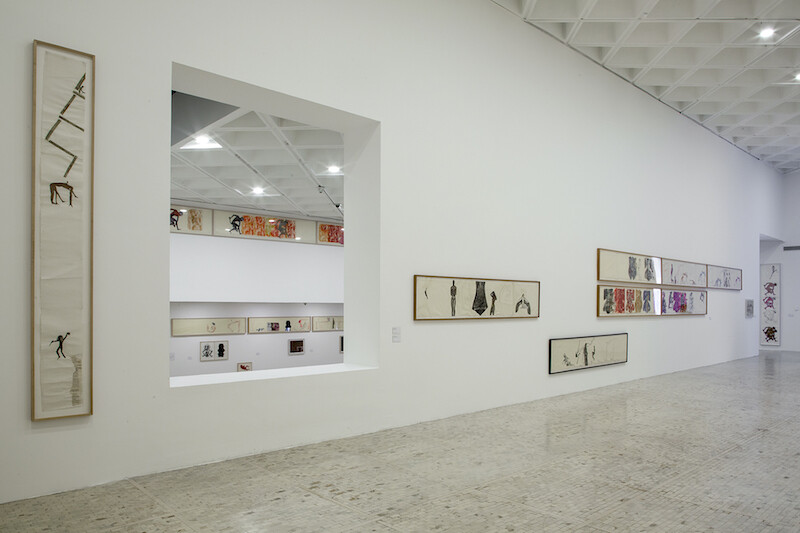 Outside, in the Bosque de Chapultepec, regardless of the Tamayo and the Speros inside, a squad of acrobats called voladores perform a Mesoamerican version of the maypole ceremony. Five men climb a 30-meter pole; four tie themselves to coiled ropes, push off, and follow their unwinding tethers back to earth. Spero’s work has visible armatures, too—like the fishing line that holds up the screaming heads seemingly orbiting her 2007 sculpture Maypole on ribbons and chains. And the museum has its physical limits: as wide-ranging, even encyclopedic as this survey is, there are gaps in the record, dozens of missing pieces from the “War” or “Codex Artaud” series that, taken together, emphasize in spectacular fashion the sense that cultures change, but human nature never will. “Paper Mirror” does a fine job imparting the atmosphere of Spero’s oeuvre more than its sheer, living scale. That would require a Museo Spero all its own.