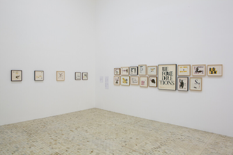 Arranged chronologically, as it is here, Spero’s oeuvre bares its own internal epochs, too. She began as a painter of torturous brown-black miasmas of figure and ground (Great Mother Birth, 1962); then, deciding to abandon the masculine canvas, came the “War Series” (1966–70), jagged gouaches in army tones on thin, wrinkled paper with descriptive names like F111, Victims in River of Blood (1967) and Kill Commies / Maypole (1967, depicting the grisly object she would realize some forty years later as a sculpture); and, perhaps most famously, her subsequent resolution to depict only female figures, and to represent the masculine only in the negative. Gradually, too—partly an ideological stance, partly a concession to rheumatoid arthritis—she stopped making marks altogether and turned to a system of stencils and collage, derived from decades of her own imagery of abject victims and bent goddesses. In any wide selection of Spero’s work, there’s no problem detecting the through lines not least because the artist often literally recycled and reiterated the same figures from Roman myth, Egyptian goddesses, Homer’s Odyssey, the Vietnam War, and the writings of Antonin Artaud as stenciled cutouts. The final work in the show, chronologically speaking, occupies the museum’s central courtyard, so that it is also the first work you see. Maypole: Take No Prisoners (2007), a tall pole surrounded by a flurry of severed, screaming heads. It serves as a culmination in a way that artists’ late masterpieces rarely do—maintaining and rephrasing, once again, one last time, the vocabulary Spero had been developing for decades.
