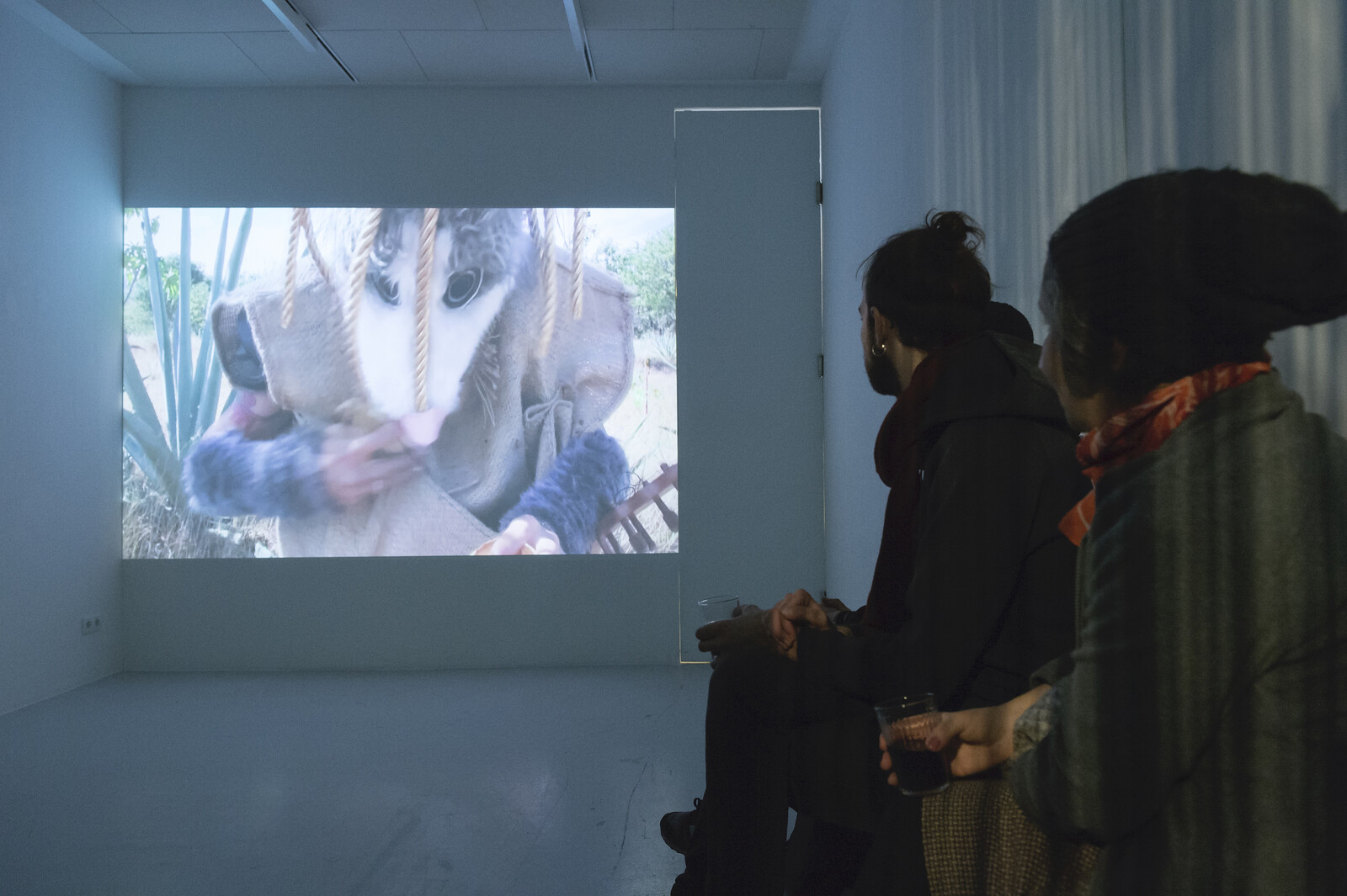On a screen in the main room is a digital animation that resembles a computer game. A figure with Donald Trump’s iconic bouffant bounces maniacally about to a marching band, while an automated voice names forms of structural violence under capitalism: “accumulation by dispossession, subhuman territories,” etc. In an abrupt edit, the screen goes black, and a sound recording of woman human rights defender Bety Cariño plays against the dark screen. The urgency in Cariño’s voice builds over the course of this clip and its confidence overwhelms me. Not because of what she says—her message is simply that she will not be intimidated by the cabrones who murdered fellow environmental activist Mariano Abarca in 2009, and who would murder her four months after this speech. To hear a woman in full possession of her own voice speaking her objection to power and enunciating her fearlessness without a trace of self-doubt is simply exhilarating. It is Rincón Gallardo’s ability to bring together expressive registers—from the playfully mocking to the searingly legitimate—without undermining either element that lends her exhibition its strength. Her sets are saturated with signs that testify to the violence of a powerful neocolonial system, in which mythological creatures and Mesoamerican women and queers nevertheless persist in their world-making.