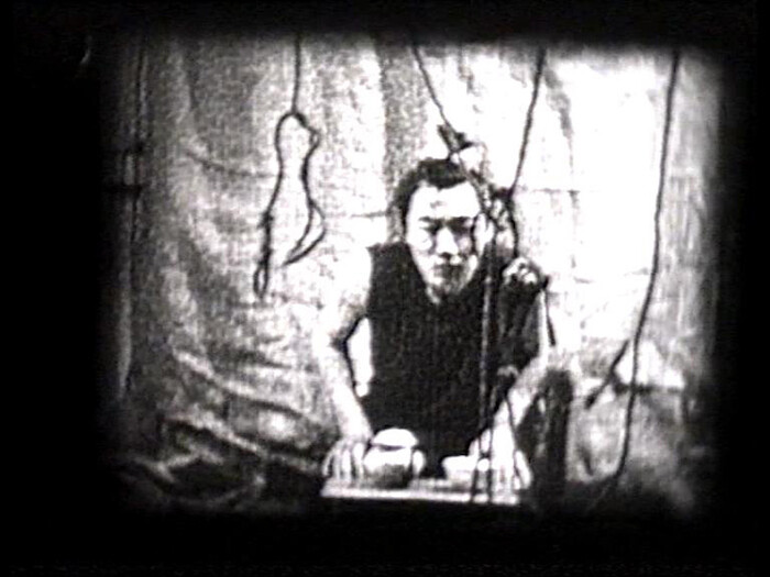 This interest in certain primal impulses is shared by the other artists in the show “Neon Paradise: Shamanism from Central Asia,” who are all from Kazakhstan, Kyrgyzstan, and Uzbekistan. These nations—parties to the Soviet communist adventure, ancient yet with a newly reshaped identity, and not yet trampled by tourists—have been at the center of Laura Bulian’s exhibition program for years now. Organized around national/geographic lines, like a national pavilion on a miniature scale within a commercial gallery (the majority of the works are photos and videos, all based on the folklorization and exoticization of marginalized Caucasian cultures, with almost no breath left between them), the show appeals to ethnic archetypes, stereotyped identities, legends, and the contaminated environment left behind by the Soviet era, remaking the intimate connection with tribal and spiritual practices in order to satisfy the desire for “a lost paradise.” But rather than describing a phenomenon, the title is meant to spark the imagination, and the exhibition therefore ranges from a documentary approach (like with the video Sham, 2004, also by Kasmalieva and Djumaliev, which depicts a pilgrim journeying to the slopes of the Kočkor Ata volcano in order to be healed), to others that are vividly playful (like the disconcerting 8mm film Tea Ceremony, 2001, by Kazakh artist Alexander Ugay, which condenses a thousand-year-old liturgy into two minutes of shaky footage), to others where shamanism infiltrates the real world in a more magical form.