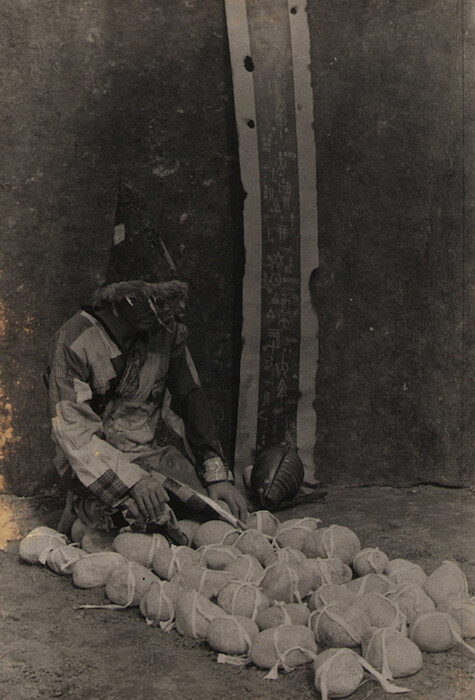 The same penchant for poking fun inspires the Kyzyl Traktor group (“Red Tractor,” the first avant-garde movement to emerge in Kazakhstan after perestroika, to which Atabekov also belonged) to become makeshift shamans, as we see in the photos Journey to the East (2002): they wear colored tunics and pointy hats, crossing a red bridge or approaching a monument with an uncanny musical instrument on their shoulders, or going down a hatch while performing odd rituals. Vyacheslav Akhunov (born in Kyrgyzstan and based in Uzbekistan, which he is barred from leaving for political reasons) reinterprets the motif of ecstasy, drawing on Sufism in the two videos Ascent and Corner (both 2004): the former leads us up the spiral staircase of a medieval tower—the viewer almost gets winded—in an endless ascent, while in the latter the artist imprisons our gaze in corners of brick and stone.