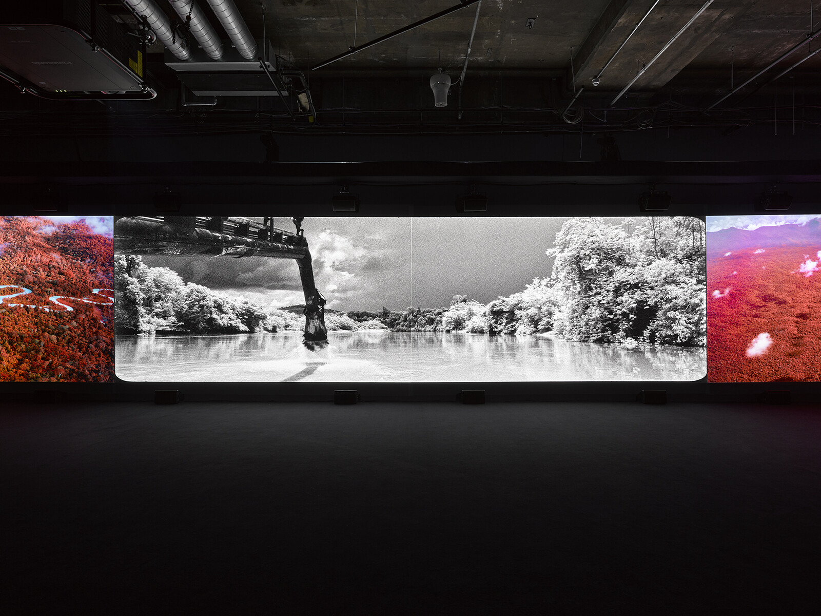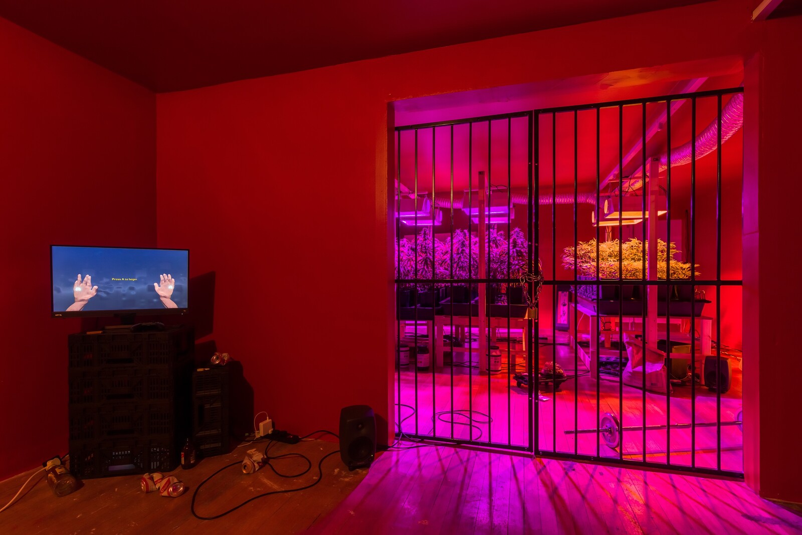 The archetypes invoked are relevant to the slew of “immersive” shows across London this spring, and as a perpetual feature, nowadays, of the art landscape—from Nelson, to Yayoi Kusama’s infinity rooms at Tate Modern, to R.I.P. Germain at the ICA, Richard Mosse at 180 Strand, the 360-projections of David Hockney, “Dalí Cybernetics”, and “Van Gogh: The Immersive Experience,” as well as any number of VR works across the city. These are wildly disparate forms of art, with varying levels of intent, from the unabashed fandom cash-cows of shows like the Dalí, which promise heightened access to elusive masterpieces, while shows like the Nelson and Germain ask for a little more intellectual engagement. But this one little adjective, “immersive,” seems to function across various media with a common dramatic purpose. Our invitation to be part of the work isn’t an innocent exchange; each asks us to inhabit a character. In Germain’s installation, where parts of the gallery have been turned into a grow room or a mocked-up bling jewelry shop, we’re shoppers, browsing for aspects of Black British culture; in Mosse’s ultra-wide-screen film Broken Spectre (2022), we’re tourists with the gift of flight, able to witness from above the destruction of the Amazon; at the Van Gogh Experience, in a warehouse stuffed to the brim with bad printouts of his self-portraits, we’re cast as devoted cult followers of the artist, visiting a mad funhouse dedicated to immortalizing his youth, complete with giant, totemistic sculptures of his head and excerpts of his diary being piped out over swelling, symphonic music.