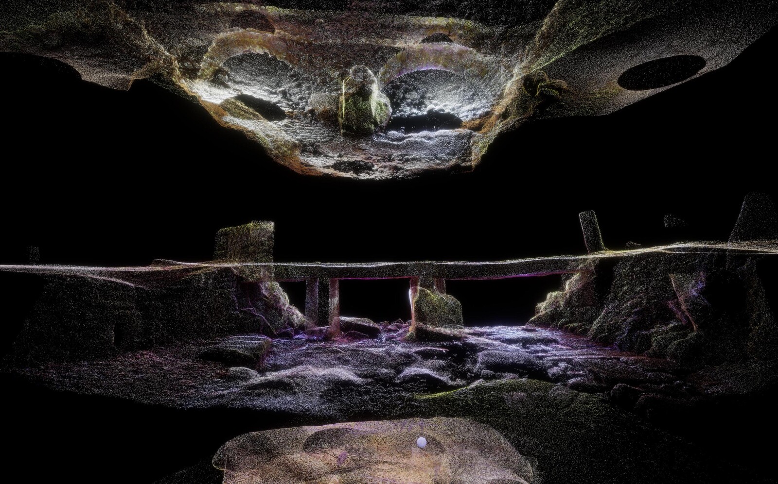 Visitors to the Van Gogh “Experience” can pay extra for a ten-minute VR video (VR being, on the scale of the “immersive,” an eleven, with big 360-projection being a nearby ten, loud symphonic music a steady eight; your standard single-screen projection a mere five, and reading a book, by this metric, being a one). We’re given a ghostly tour of Arles, propelled forward as we drift through cafes and fields; all you can do is look around you from your chair, a disconnect which left me with motion sickness. The VR Arles bears no small resemblance to Mark Leckey’s VR work The Bridge (2023), being shown as part of the group show “Tremulations” at Swedenborg House. Here, we are moved along by an unseen force under a haunted motorway overpass, eventually sinking through the ground to see earlier, primordial iterations of the structure, as a stone bridge and ultimately an ancient stone passage. In both cases, it’s as if we’re strapped into a ride, maybe coasting along in something like the original “Pirates of the Caribbean.” The proximity to Disneyland is no accident, with the immersive’s desire to overwhelm the audience into investing in its proffering of the fantasy made real: to be in an artwork, to be in a dream. But whose dream? The VR joyride is the apex of the immersive, and its relentless promises of engagement and interactivity: a seasick passenger on a ghost ship, a passive witness pulled inexorably forward through its world—all you can do is try to look away.