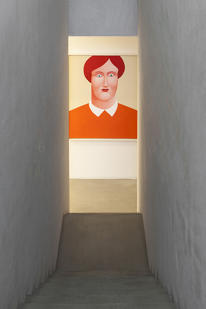 As plain as buttered rolls, looking lost against their uniform monochromatic backgrounds of different colors, the three curly-headed boys dressed in freshly laundered shirts in the “Portrait” series seem to have received a shock from the center of the Earth that rose up through their toes and left them in a state of vigilant and morbid anxiety. Their lips are pressed into bows and their owlish, purple-rimmed eyes seem to stare and see nothing, like walled-up windows. Looking at them, one wonders if they are awake or dreaming.