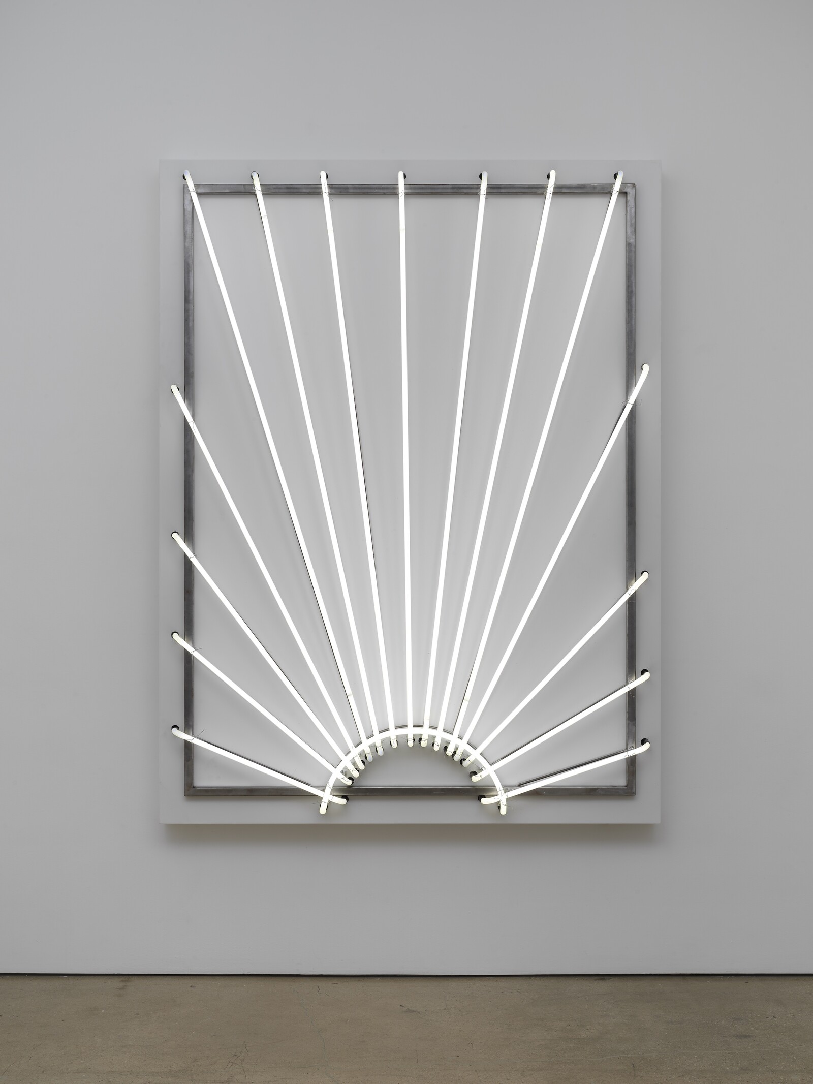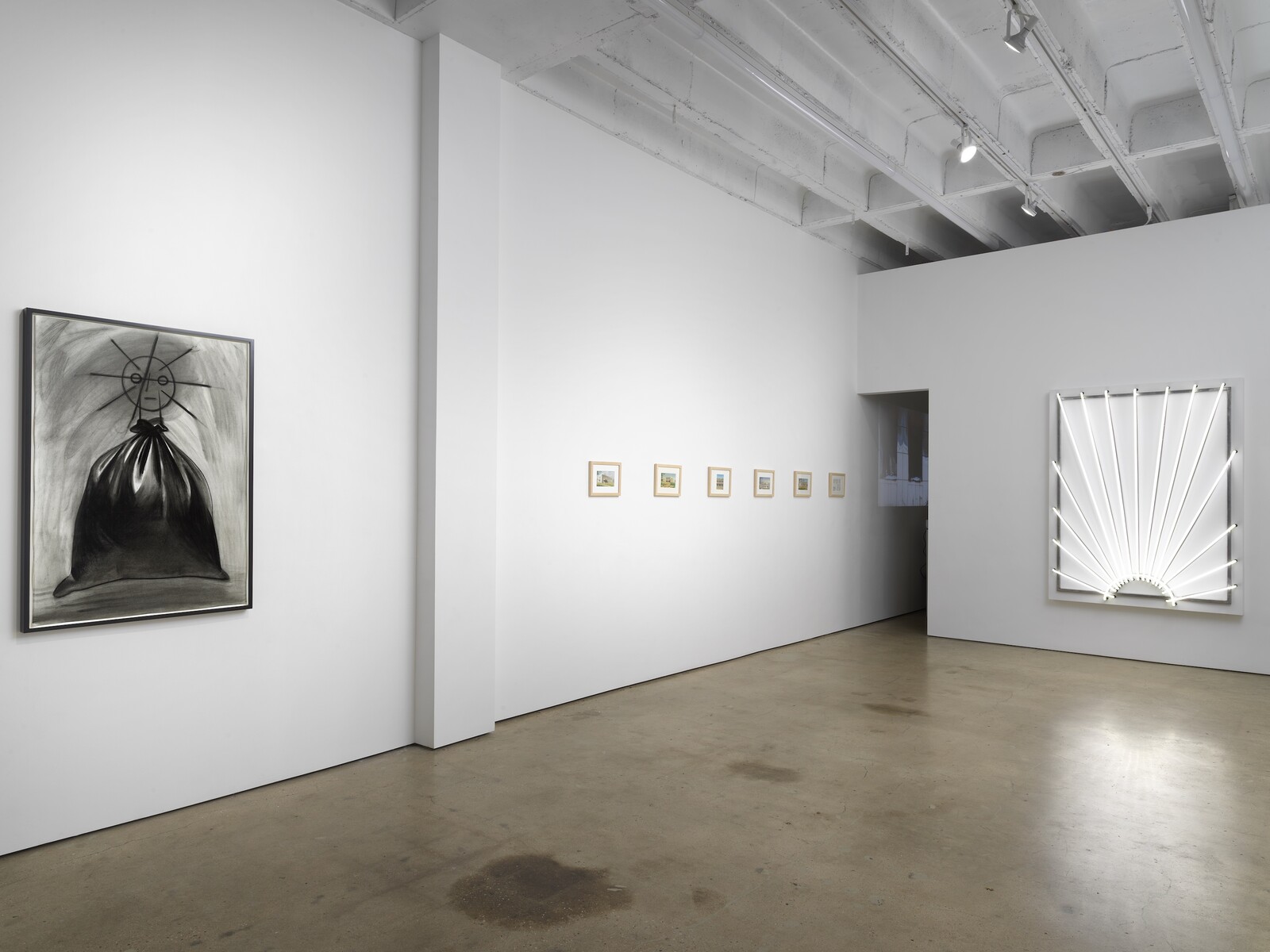 The 1913 opera Victory over the Sun describes an attempt to capture the sun in order to overthrow linear time and reason. The work ushered in artistic traditions that came to shape Soviet Futurism: it’s where Malevich’s black square, for instance, made its first appearance (on a set curtain). Nikita Kadan’s exhibition, which takes its title from the opera, is anchored by a wall-hanging neon sculpture entitled Private Sun (2022) which refers to a classic of Soviet-era design: a window grate, ubiquitous in large apartment buildings, with bars like the rising sun. Where the avant-garde original advocated for the destruction of the present to clear a path for the new, the Ukrainian artist’s use of the architectural feature suggests a darker notion: of being held captive in someone else’s idea of the future.