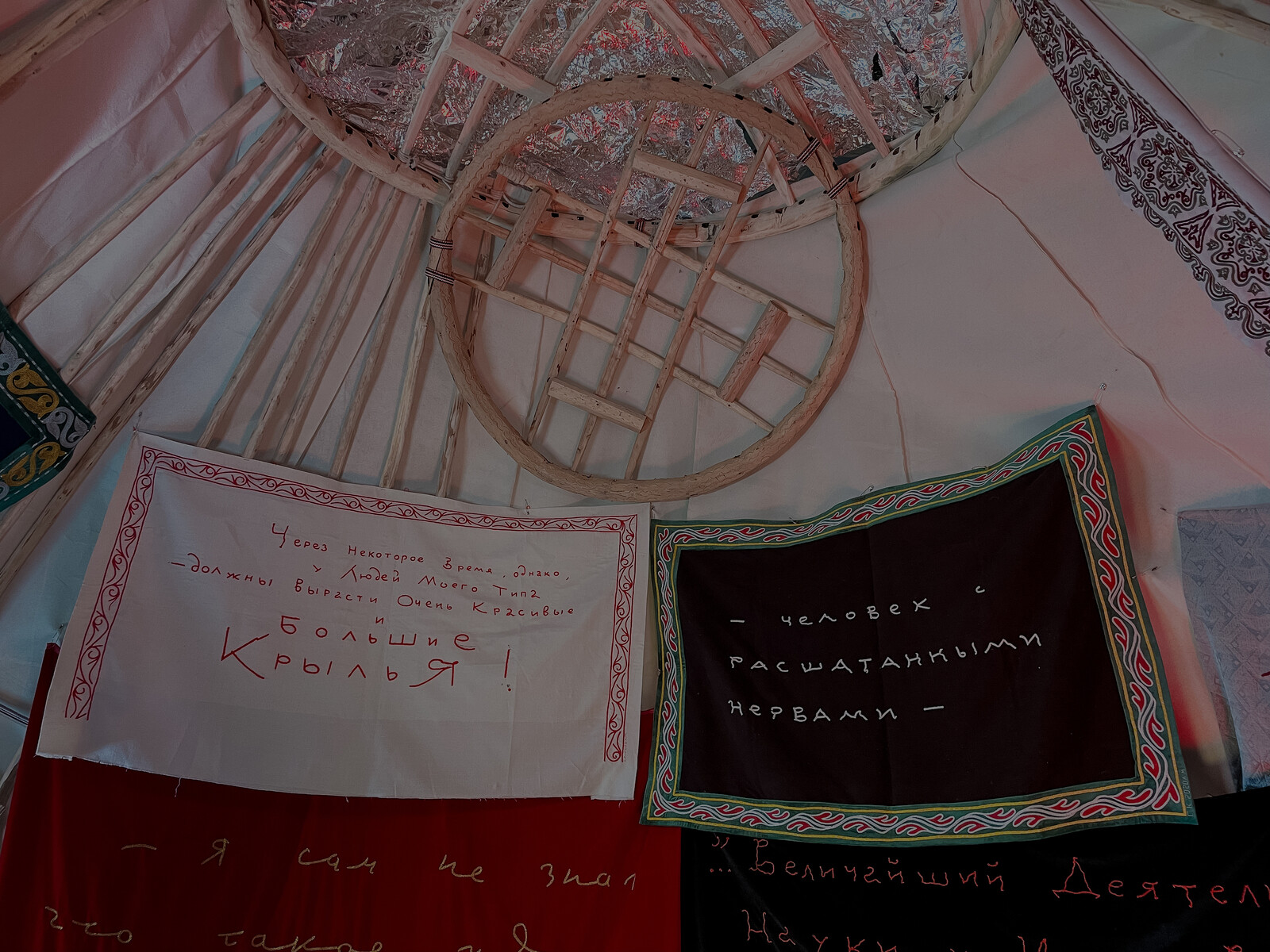 ORTA’s collaboration with Kalymkov’s work democratizes the often discredited idea of the genius by flipping it: we don’t come to the pavilion to gaze at the genius of an individual, but to discover our own through a collective experience. Focusing on an artist who never got the recognition he deserved during his lifetime also gives hope to those of us who are struggling to broaden art-historical narratives, making place and space for manifold voices, multiple timelines, and chronologies in different institutional platforms. ORTA’s work with Kalmykov’s legacy is not historical or didactic, but rather embodied and based on collective experience. As such, they make it seem as though Kalmykov is our contemporary, and they are constructing his proposed new reality—his new world—together.