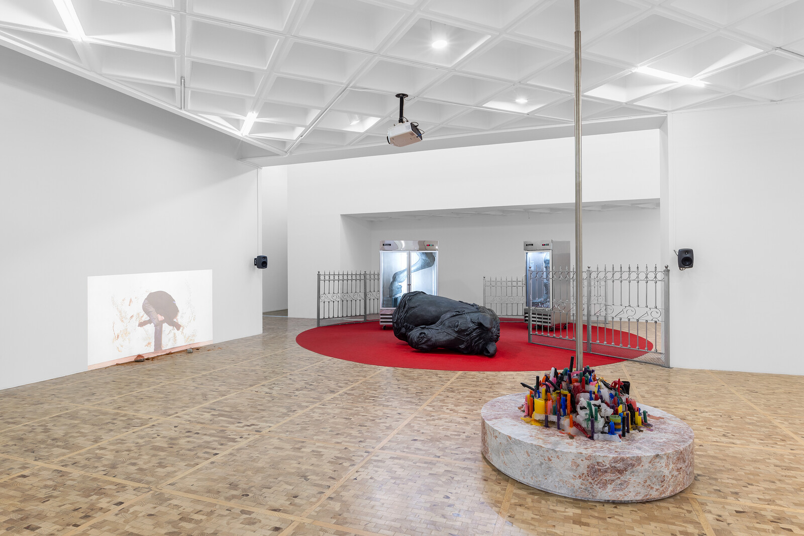 Aside from those self-contained efforts, “OTR^S MUND^S” has all the pitfalls of group shows with none of the graceful alchemy of strange objects in juxtaposition. Indeed, its lack of structure and haphazard installation felt entropic: nothing seemed to relate in any meaningful way. Visiting felt like the institutional equivalent of mindless scrolling. The show’s lack of discursiveness and self-described “cacophony” felt insistent and repetitive, while its representation of “other worlds” was as shapeless and whim-driven as our stochastic modes of contemporary consumption.