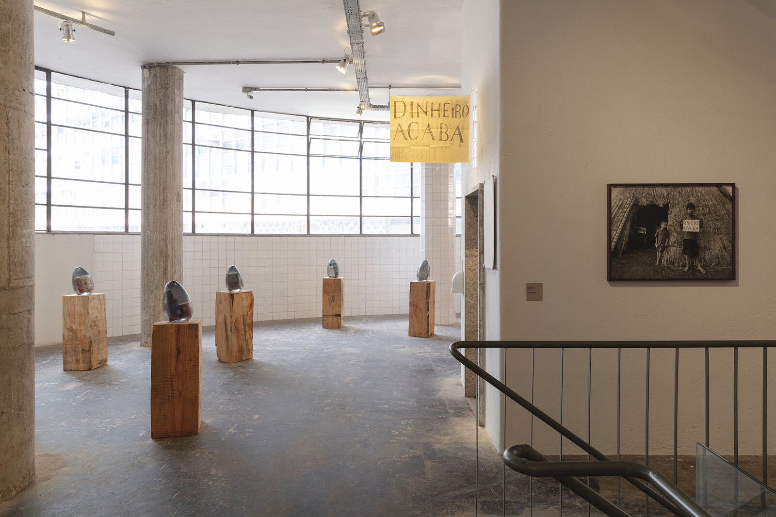 Some of these dubiously branded products caught the eye of Brazilian artist Paulo Nazareth too, who uses them as the basis for his critique of the art world’s tendency to transform cultural identity into commercial capital. In his series “Ovo de Colombo” (Egg of Columbus, 2020), one of the first bodies of works encountered in this expansive retrospective of art made over 17 years, they have been sealed inside a resin egg and each placed on their own pedestal: packets of flour bearing dark-skinned people picking corn by hand; a bag of mate powder illustrated with an image of indigenous people apparently participating in the theft of their own land by clearing the forest for crops; a bottle of Imperio beer. The transparent encasements are also reminiscent of bell jars, rendering the products aesthetic curios to be mulled over.