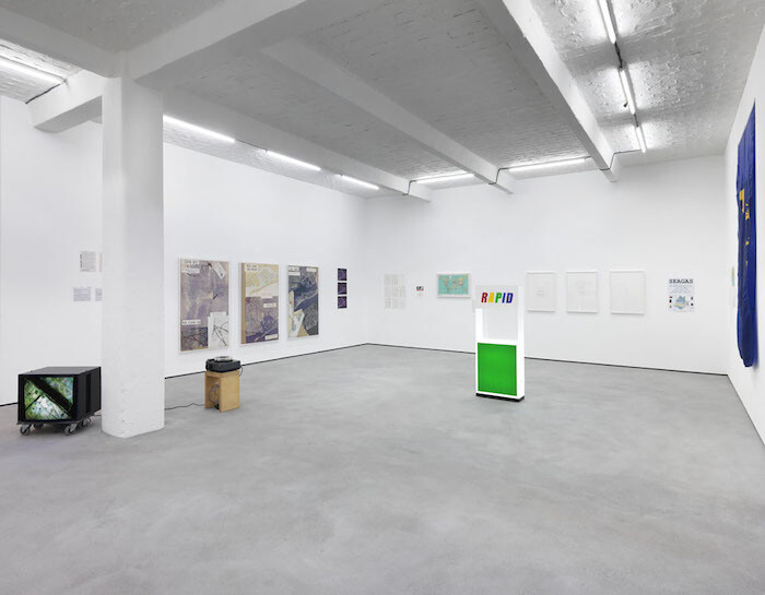 The energy, if not the specifics, of those early ideas comes across in “to be built.” The show is like a retrospective-lite; neither exhaustive nor tightly focused, it presents the main themes and formal vocabulary that have persisted with surprising continuity in Fend’s work until today, with an emphasis on the way the work has been (self-)historicized. In this framework, it’s possible to recognize the profound influence Fend has had on a generation of younger artists engaged with similar topics, from Tomás Saraceno and Tue Greenfort to Simon Denny and Daniel Keller.