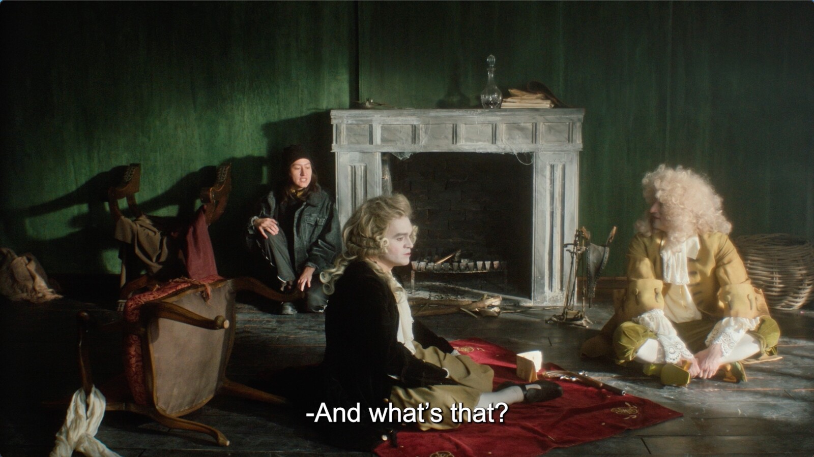 All of these works, except the last, have circulated widely in museums and galleries. Like a Palace is a premiere, yet the complexity of the piece does not play to Wächtler’s strengths. In contrast to most other of his videos, where the narration is found either solely in text or in a monotone voice-over, this thirty-minute video combines staged dialogues with text slides that constantly interrupt the actors’ performance and the video’s pace. This dialectic is combined with one of the most bureaucratic plots I’ve seen in a while: it’s hard to understand exactly what the goal of these time travelers is, beyond following abstract rules, which makes for a colder experience than usual in Wächtler’s videos. While nothing much appears to happen in his earlier videos—at least in a superficial reading—their undercurrents are deep with emotion. Or rather, they capture an incapacity to emote or to escape mental loops, as in the routines he depicts; that vacant act of staring at life unfolding from an unbridgeable distance, the name for which might be depression.