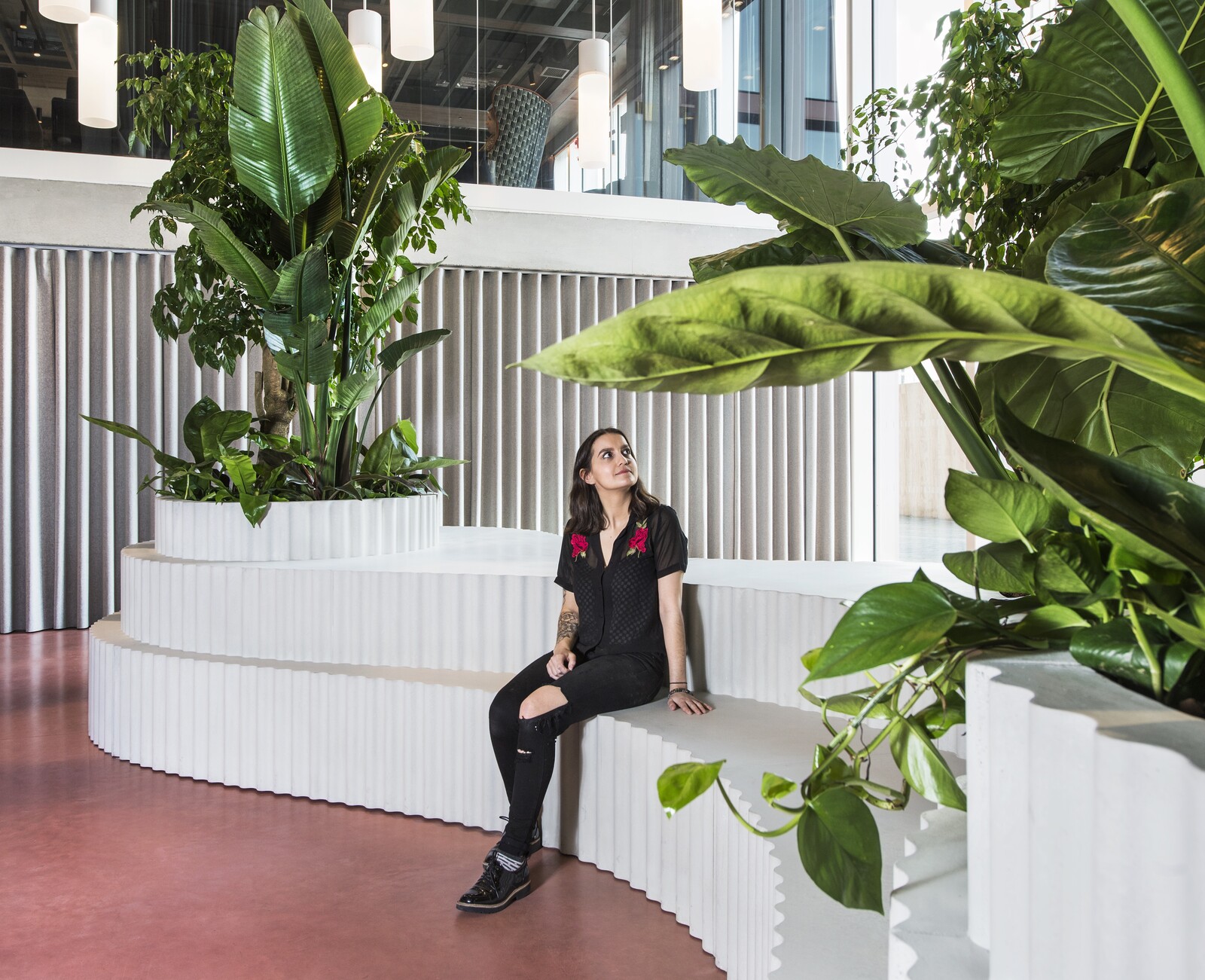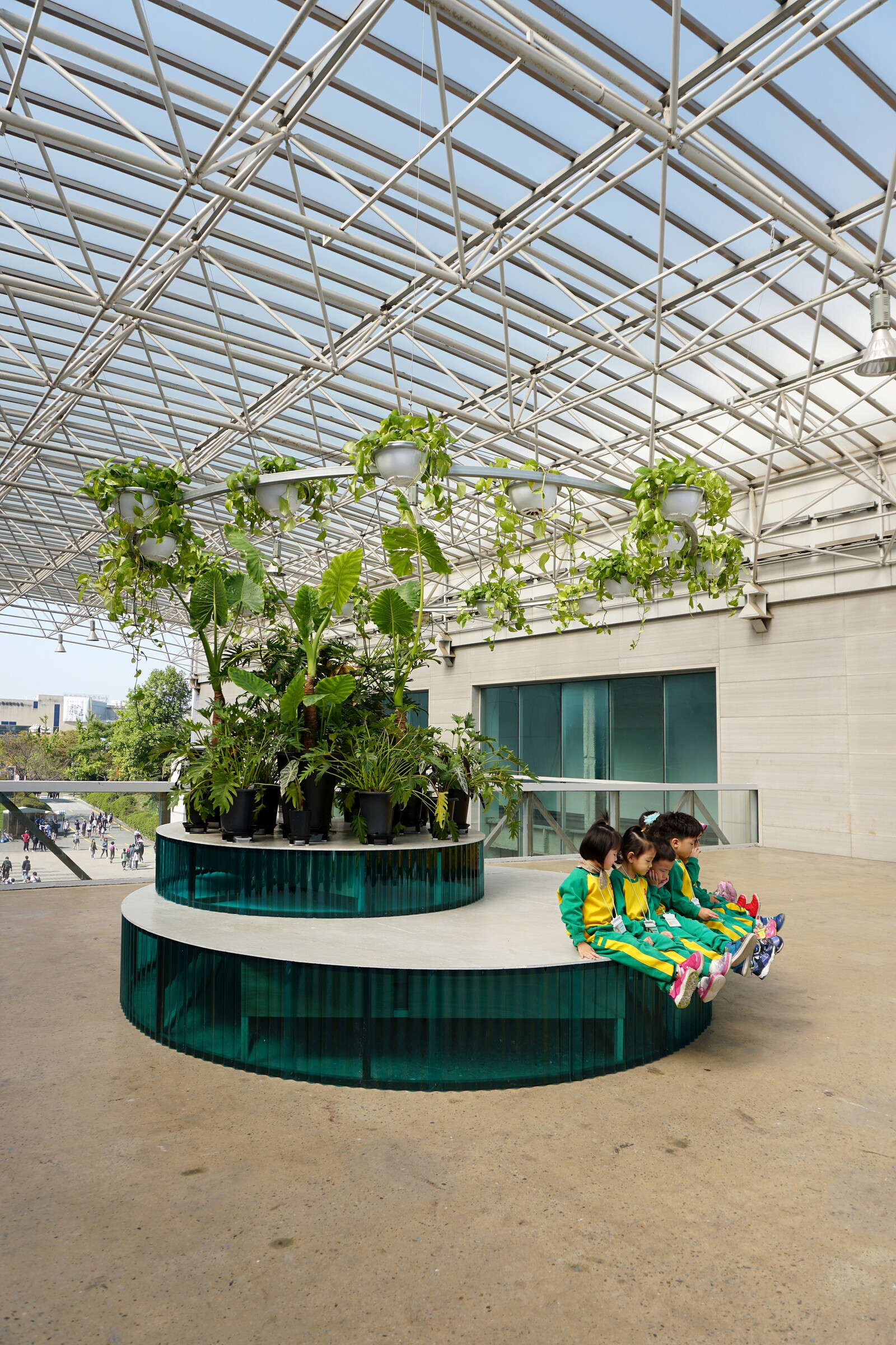 If plant opinion determined exhibition design, the results might look like Céline Condorelli’s Zanzibar (2018–ongoing), an interactive public sculpture based on eighteenth-century museum and garden benches. Installed at the office building R7 in London’s “regenerated” Kings Cross district, Zanzibar “provides a place to rest or converse, for people to make their own performances, whether planned or impromptu; or simply for them to sit on and watch the world go by; to read, to wait, to talk together.”5 It curves with the grace of a helix rim. Although it invites public intimacy and conversation, its purpose is higher than idle chatter. It is a place where one goes to listen—and consent to a little interspecies eavesdropping.