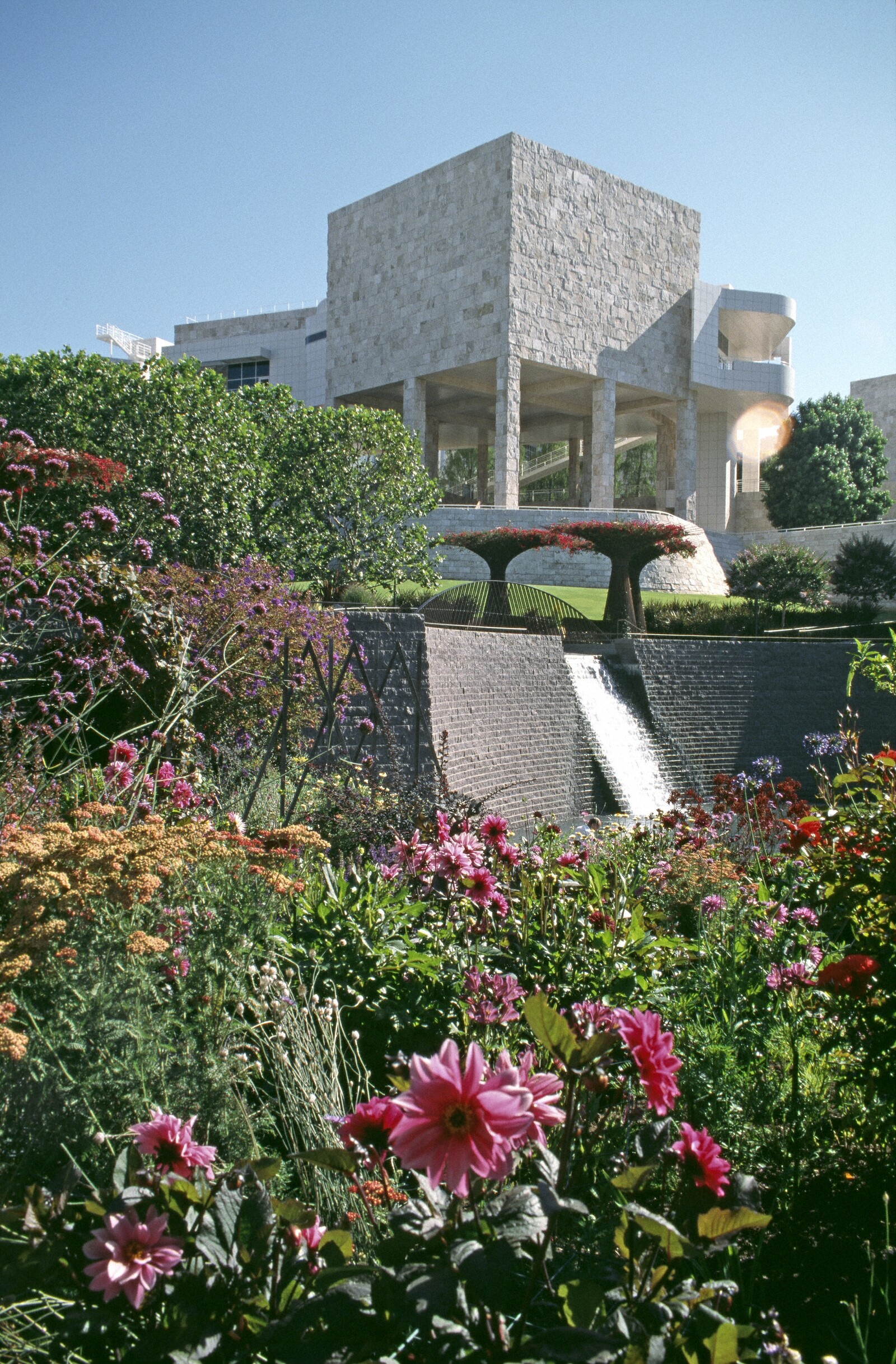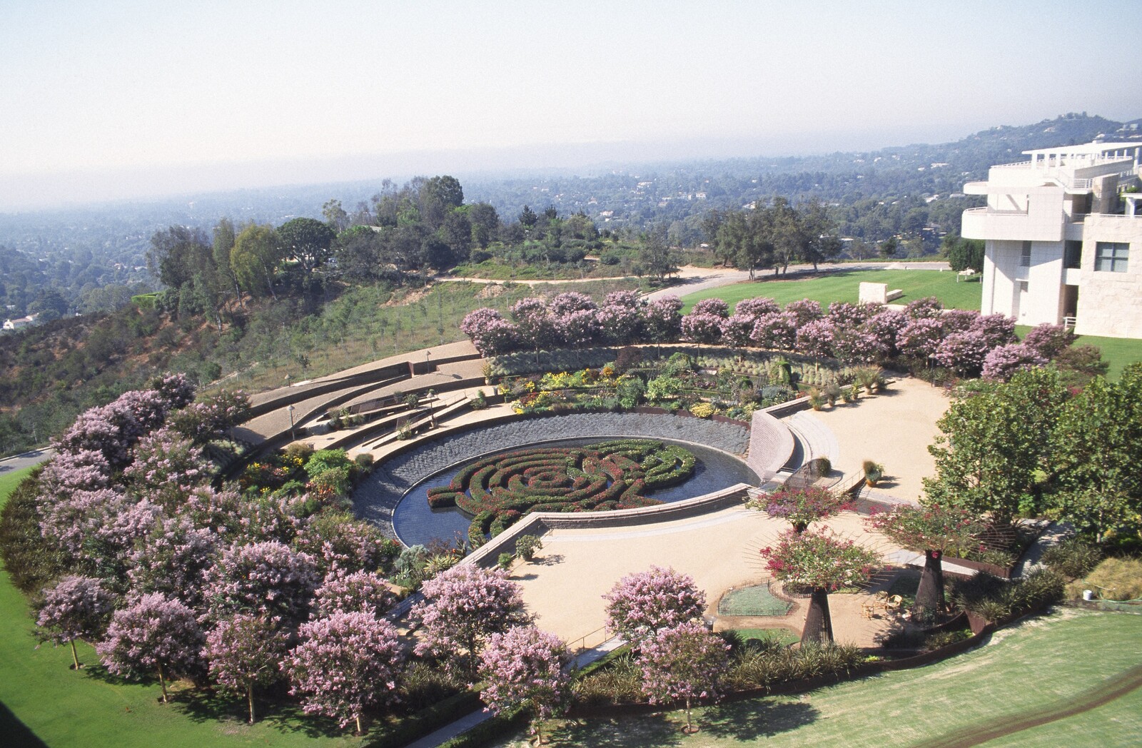 The tour concluded with The Bowl Garden designed in 1997 by painter and installation artist Robert Irwin. To access the area, which is a scooped-out terrace dominated by an ornamental pool and the odor of variegated society garlic, the visitors zigzag through plane trees growing unrestricted—or, in the docent’s words, “helter-skelter.” I was surprised to hear this particular turn of phrase considering we stood a few miles from where followers of Charles Manson murdered five people on the night of August 8, 1969, in the name of Helter Skelter, Manson’s race war apocalypse prophecy. It was as though the words were in the air, born by the lingering frequencies of that brutal crime. Violent legends persist with undying tenacity.