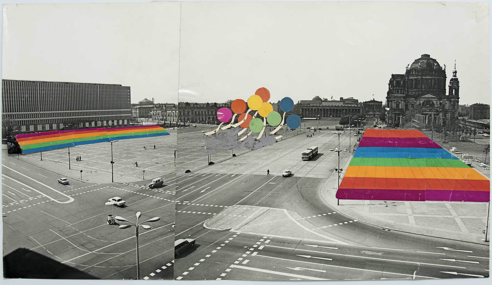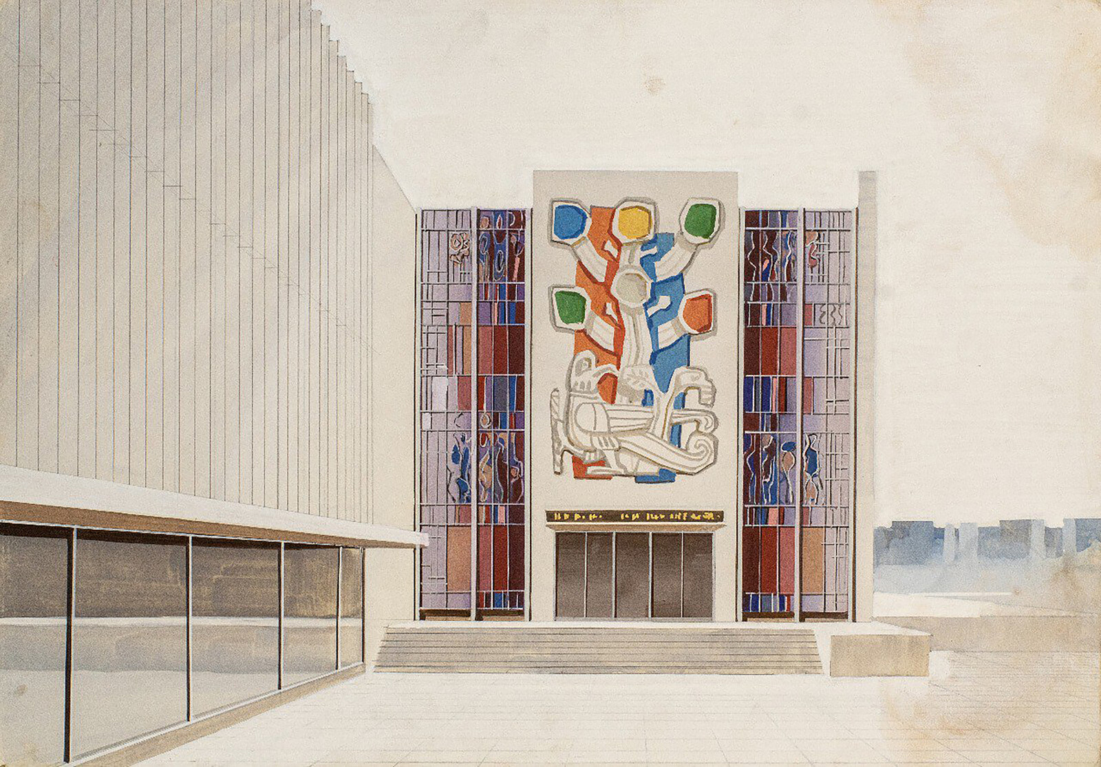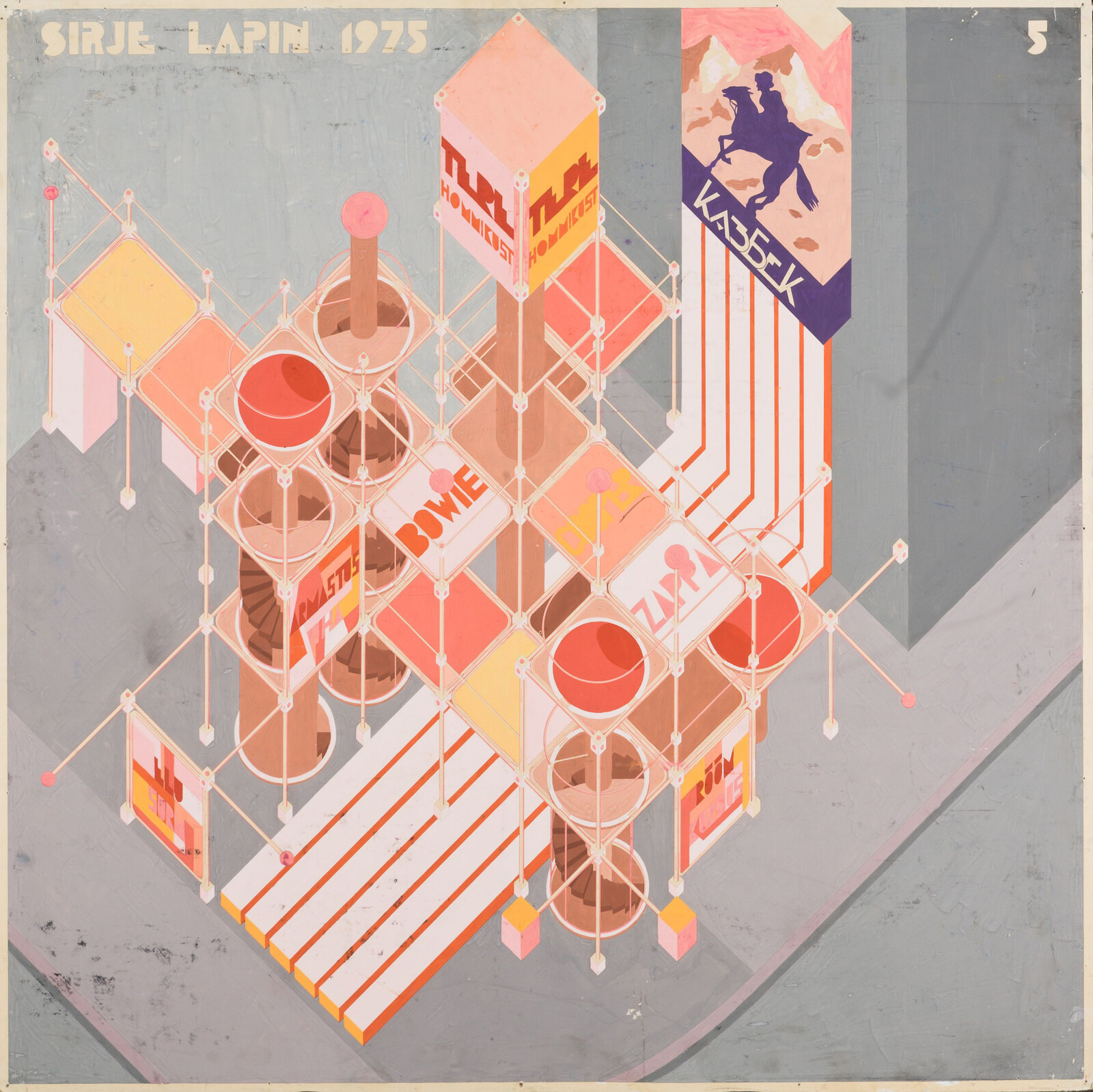 One of the benefits of the expansive approach that “Retrotopia” takes is the challenge it mounts to monolithic perceptions of Cold War-era aesthetics, which too often appear in popular culture as universally streamlined, rational, and technologically oriented. This is not the case in the exhibition, which showcases multiple works—such as a series of late 1970s depictions of Ukrainian housing projects by architect Iosif Karakis—that complicate these prevailing stereotypes. Rendered in a chaotic mix of watercolor, gouache, pencil, and pastel and crowded with splashes of verdant foliage, Karakis’s works take up nearly an entire wall in the capsule selected by curator Alex Bykov. They offer a strikingly organic, almost impressionist re-interpretation of familiar prefab structures, their towering, rigid forms appearing smeared and softened as if having been soaked by rain.