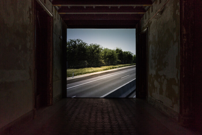 But of course, there are exceptions. Forensic Oceanography’s video installation Liquid Violence (2018) brings together different consequences of EU and Italian policy in relation to the migrant crisis. Using the language of a detached report, proved by numbers and concrete decisions, Forensic Oceanography depict a realistic image of current biopolitics, in which thousands of lives are doomed to death. John Gerrard examines another trace of immigrantion policy. His Untitled (near Parndorf, Austria) (2018) emerged from the artist’s journey to a nondescript section of motorway in the south of Vienna on Saturday August 29, 2015. Using news photos, Gerrard identified the place where, two days previously, an abandoned truck was found. The vehicle contained the bodies of 71 migrants, all of whom had suffocated. Using a computer game simulation engine, the artist reconstructed hyper-realistic video that portrays, in a very calm manner, the highway on the same date.