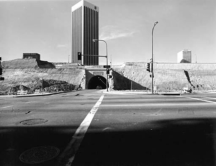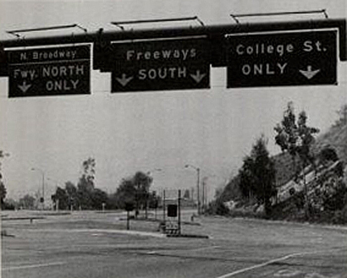 “…so Maria lay at night in the still of Beverly Hills and saw the great signs soar overhead at 70 mph, Normandie ¼ V ermont 3/4, Harbor Fwy 1. Again and again she returned to an intricate stretch just south of the interchange where successful passage from the Hollywood onto the Harbor required a diagonal move across four lanes of traffic. On the afternoon she finally did it without once braking or once losing the beat on the radio she was exhilarated, and that night slept dreamlessly.” (Joan Didion, Play It As It Lays, New York, 1970, p. 16).