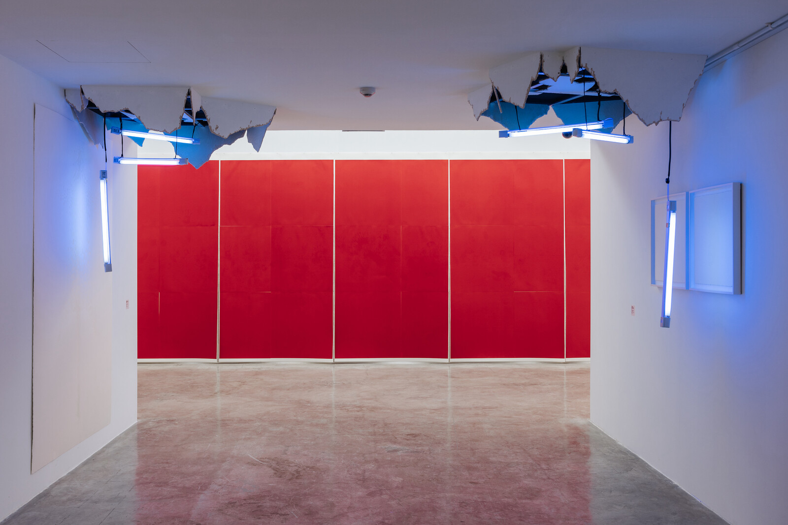 Among the “Missing Link” series (2023) is an eighteen-meter-wide stretch of hanging sheets of paper covered with thermochromic ink. The work is activated when visitors touch it with their hands, the ink responding to the corresponding increase in temperature. The color of the ink becomes lighter each time it is touched, until finally it vanishes. Here is an elegant representation of the small increments by which the visible world is pushed past the point of catastrophe. By alerting us to what is becoming invisible, Tiravanija illustrates the consequences of humanity’s present blindness.