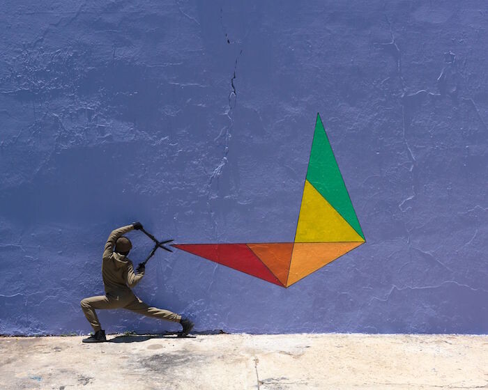 Berlin-based Robin Rhode’s third solo exhibition with Stevenson is an accomplished recapitulation of ideas and gestures that have featured in his mature practice since leaving South Africa in the mid-2000s. Rhode’s work is grounded in repetition, notably his Eadweard Muybridge-like photo animations, which here include Paradise (2016) and Inverted Cycle (2016). These sequentially choreographed still performances incrementally explore a concise narrative, here to do with color theory. But when does formal repetition become empty rehearsal? The question lingers in the interstices of this polished show, which is composed of drawings, sculpture, photographs, and films. The loose choreography of the works allows for an episodic encounter, or, to improvise on the show’s title, suggests various paths and routes to an answer.
