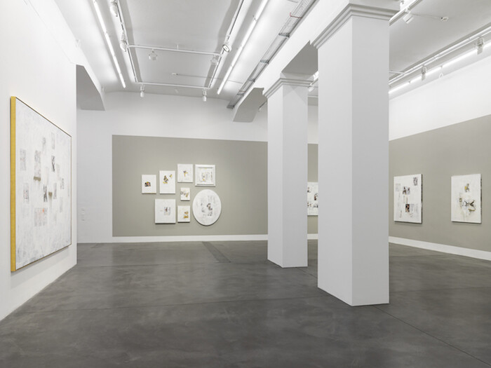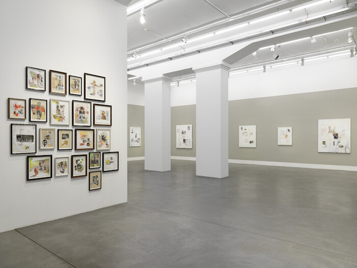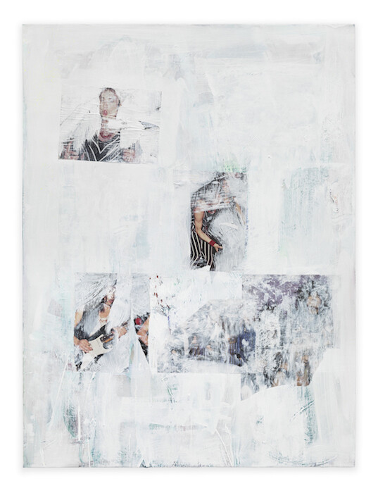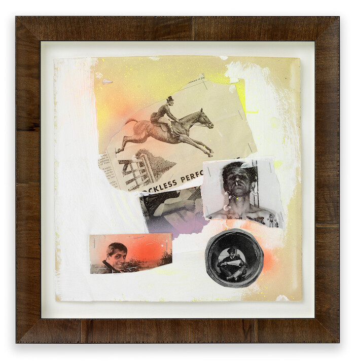 A series of rough untitled magazine collages, small-scale with paper and larger-scale with gesso on canvas, the latter borrowing heavily from the rock magazine Circus, the former uniting shots of Fidel Castro, the British royal family, and film stars in rough stapled and spray-painted arrangements, complete the Zurich show. These are works that operate on a completely different timescale, of making and viewing, to the light-boxe works. They attest that Graham is capable of being expressive, but do not rival his more important works in which control is key. Graham is not against contemporary commentary; his light-box Dance!!!!! (2008), Graham dancing at gunpoint in a Western saloon, was notably a response to Abu Ghraib. If such commentary is present here, it is veiled. We cannot know these figures; they are of our time, because lately we don’t recognize ourselves.