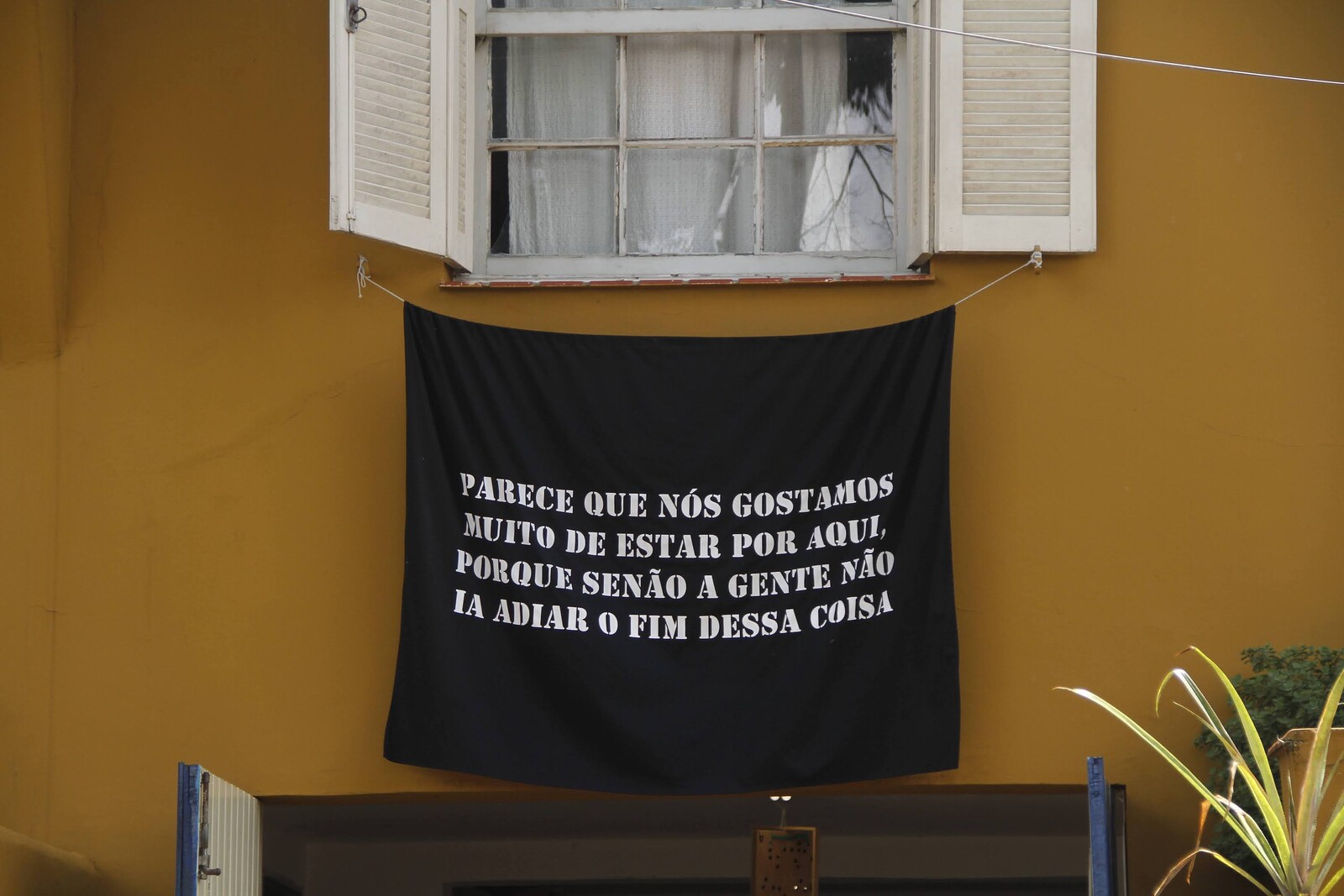 Looking at the pictures and videos that made their way round social media, I realize that while Pavlov-Andreevich’s aestheticizing action—not part of Lima’s exhibition—was everything that is wrong with self-proclaimed political art, the artists showing in “Bandeiras,” with their bald proclamations and pared-down visuals, had gone the other way. At its best, a flag represents an invitation to gather a community. As right-wing populism here and elsewhere comes wrapped in the standards of nation states, these works proposed new banners under which one might group. Fluttering across the city this past week, they sought to reclaim Brazil’s liberal identity, and to offer an antidote to the humiliation of present politics and economic woe: street memes imparting their message to the (mostly uninitiated) passers-by.