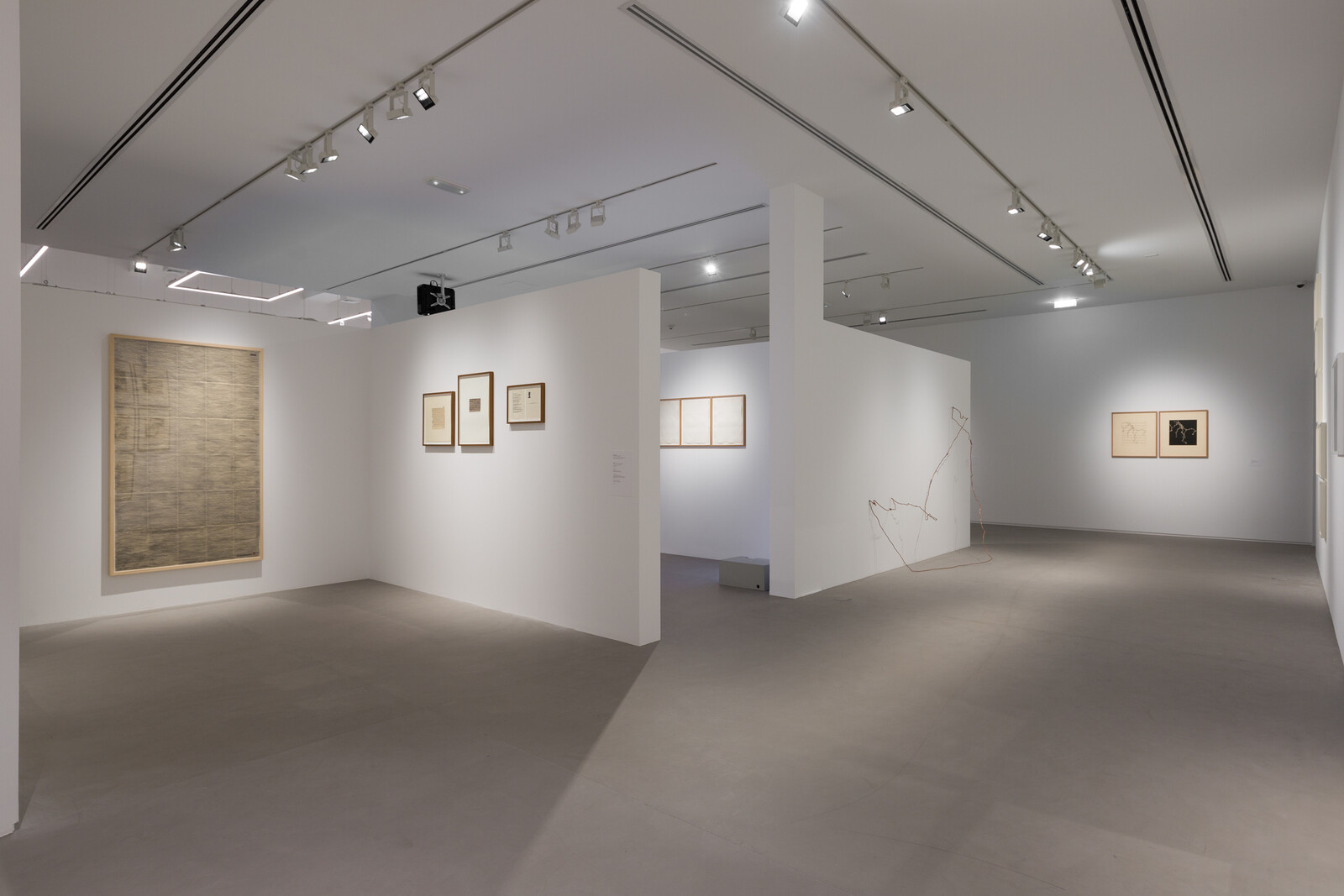 The inaugural exhibition at the nonprofit Ishara Art Foundation—the newest addition to Dubai’s Alserkal Avenue, an art and culture hub housed in a former industrial compound—is built around an intergenerational dialogue between two Indian artists, Shilpa Gupta (b. 1976) and Zarina (b. 1937). Curated by artistic director Nada Raza, the show is a clear mission statement that sets the agenda for an artistic platform concerned with contemplating South Asia and the Gulf from a transnational perspective. Drawing on a wide array of each artist’s works, the exhibition allows for anecdotal as well as formal undercurrents to surface and resonate with each other.