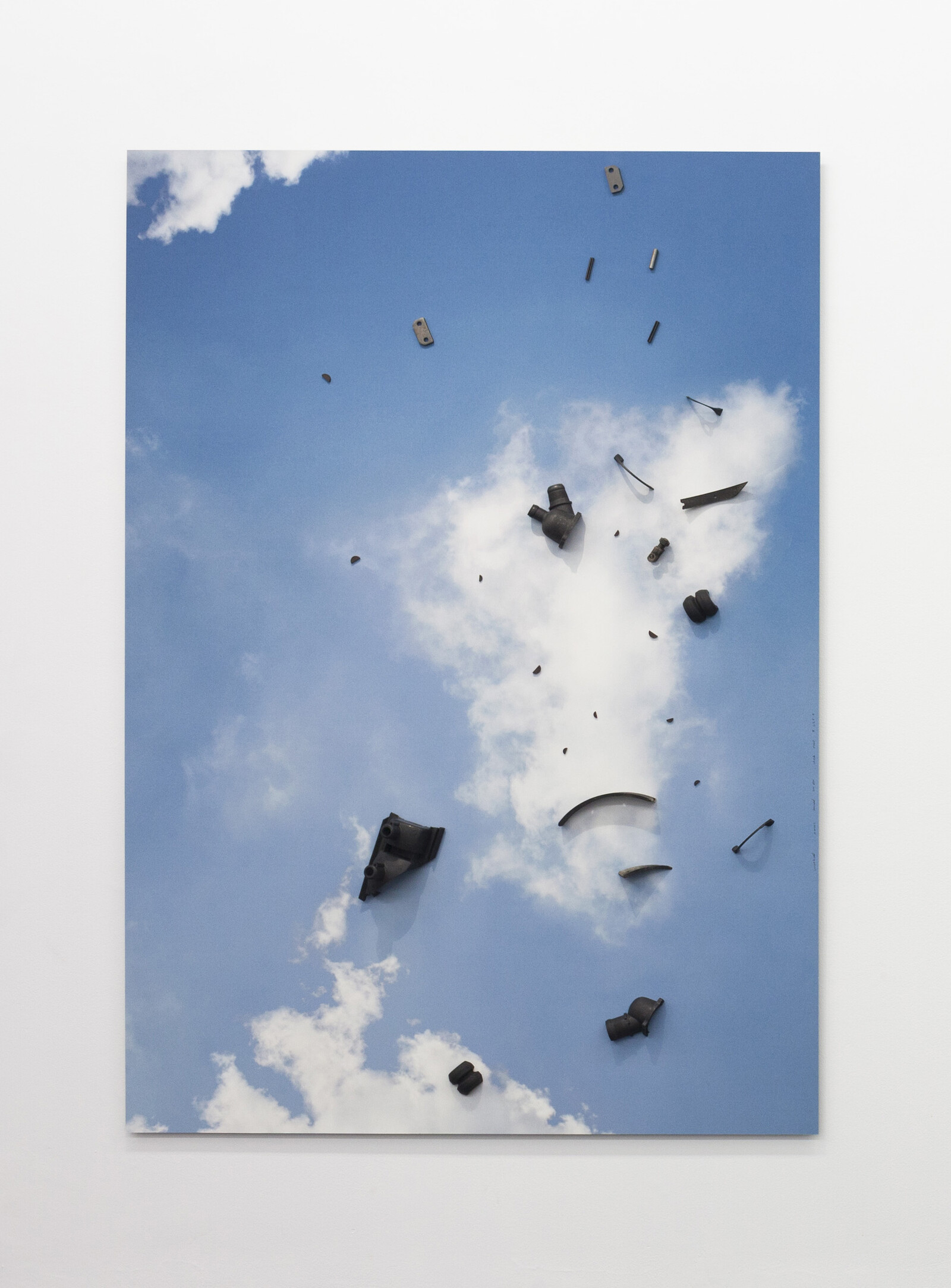 Gupta often explores spatiotemporal experience in the context of border conflicts and territorial disputes. In Unnoticed (2017), fragments of used car parts—the kind illicitly carried across the border between India and Bangladesh—are placed on photographs of a blue sky with fluffy clouds here and there, whose mundane but uninhibited movement evokes that of materials smuggled across borders on land. Gupta is engaged with an expanded notion of such borders, which are again and again redrawn between movement and capture, matter and abstraction, history and memory, experience and representation. For 100 Hand drawn maps of my country, India (2008–14), the artist overlaid blue line drawings by residents of India to reveal a shaky but accentuated pattern whose contours suggest the layered apparatus of national borders and the distortions of memory.