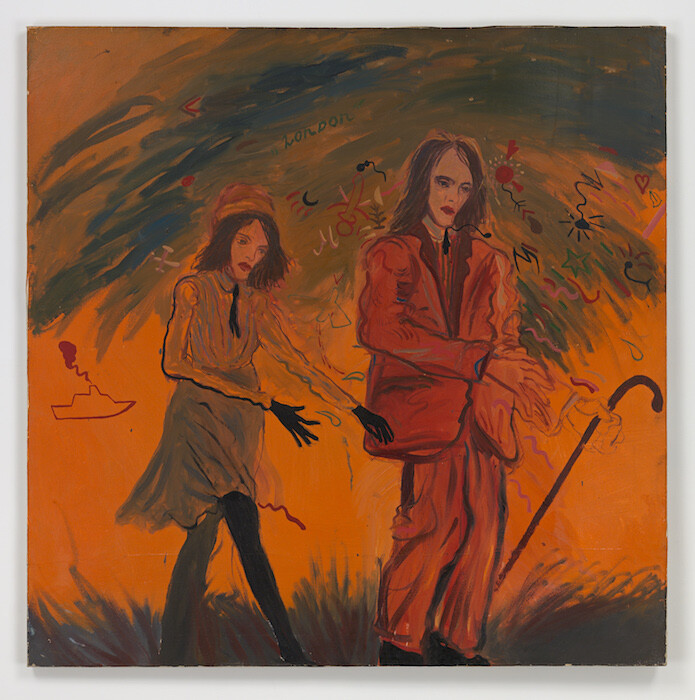 The complex, internecine role of community in defining artistic practice speaks to larger issues around the critical viability of figurative painting today. Daniëls’s earlier work transpired at that crucial early 1980s moment in which the utopian micro-communities of punk gave way to a more familiar image of the art world as a globally interconnected network. In this respect, one of the exhibition’s most disarming works is by the late Karlo Kacharava (1964-1994), still relatively unknown outside his native Georgia, whose English Romanticism (1993) depicts a bohemian-looking couple walking through long grass, while the word “London” and a cartoonish tugboat float mysteriously above them. This allusion to a particularly English mode of pastoral romanticism perhaps belatedly anticipates the global marketing of subcultural style in which the art world functions as its well-oiled R&D wing. If Daniëls’s work performs critique by taking as its subject the constructions that make expression possible, it’s not clear that a curatorial conceit that promises to revitalize and broaden the artist’s milieu is capable of a comparable operation. Nonetheless, “Sputterances” is a refreshing exhibition, reminding the viewer that figurative painting can be a vehicle for critique, beyond mere recourse to its sociality.