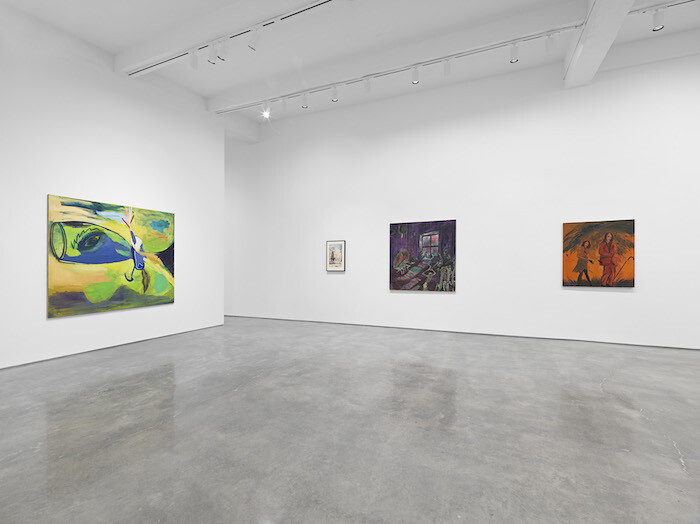 For “Sputterances,” Kantarovsky has assembled 22 artists, ranging from his peers, elder statespeople of figurative painting’s seemingly perpetual renewal, and historical figures both vaunted and obscure, alongside three works by Daniëls. It’s not immediately clear what unites these artists, much less around Daniëls—few, if any, have had a direct relationship with the artist, but all seem to share with Daniëls (and, it should be said, with Kantarovsky too) an interest in the moments where figuration exceeds itself and spills into abstraction. Rather than placing other artists’ work in a historical or conceptual lineage with Daniëls, “Sputterances” seeks to construct a transhistorical painting network on the basis of shared formal qualities and diverse modes of affiliation.