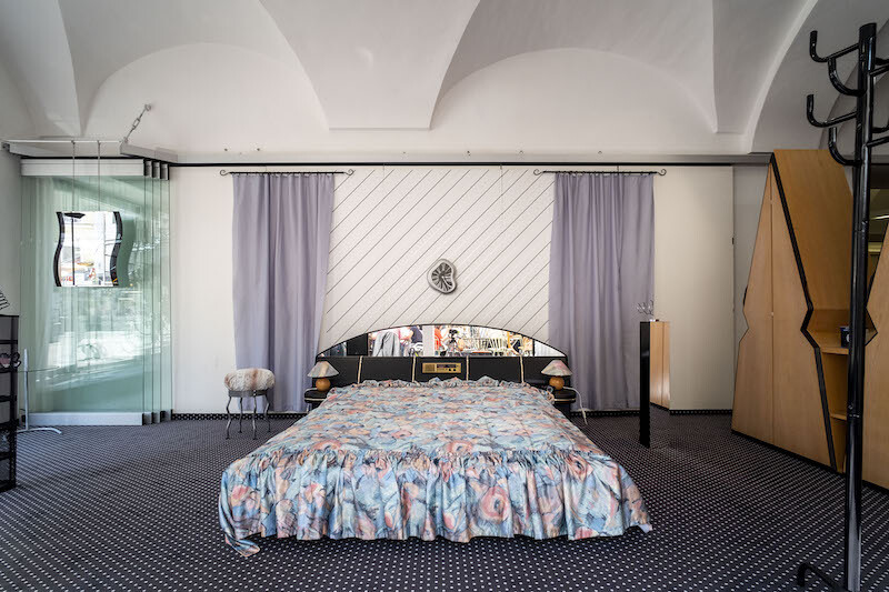 More than just a return of the repressed, this year’s iteration of the festival, entitled “Volksfronten”—or people’s front, a queering of populist slogans—seeks to address the troubling return of repressive regimes today. The current rise of new fascist administrations, Degot writes in her catalogue essay, presents “an alarming déjà vu of the 1930s.” With this in mind, it is best to gauge the festival not only psychologically, but through the lens of historical parallelism. Of the 40 or so artists in the show, Henrike Naumann’s installation Anschluss ’90 (2018) demonstrates the closest consideration of this conceit. Set as a standalone solo presentation in Graz’s Haus der Architektur, Naumann proposes an alternative history in which the 1990 reunification of Germany is swept into the ebullience over West Germany’s victory in that year’s World Cup. According to a wall text backstory of sorts, this fictive wellspring of German pride is so strong that Austria joins the new German Federation to unexpectedly complete the Nazi goal of a superstate called “Greater Germany.” Anschluss, German for “connection,” was the term used for the annexation of Austria into the Third Reich, yet it could be mistaken for the word Anstoss, the German for kickoff at a soccer game. A titular neon sign by the artist that borrows from that team’s kit welcomes visitors in, where they encounter an uncanny collection of cheap 1980s postmodern furniture assembled so as to transform the Haus der Architektur into a kind of dusty thrift store offering kitsch hand-me-downs to a poorer Eastern German consumer base eagerly catching up to the West through conspicuous consumption. The inclusion of a book authored by the now deceased former FPO leader, Jörg Haider, whom the leftist press dismissively referred to as a “yuppie fascist,” rests on a nightstand in the back of the room and pricks a scene that is all too easy to write off as sentimental nostalgia.