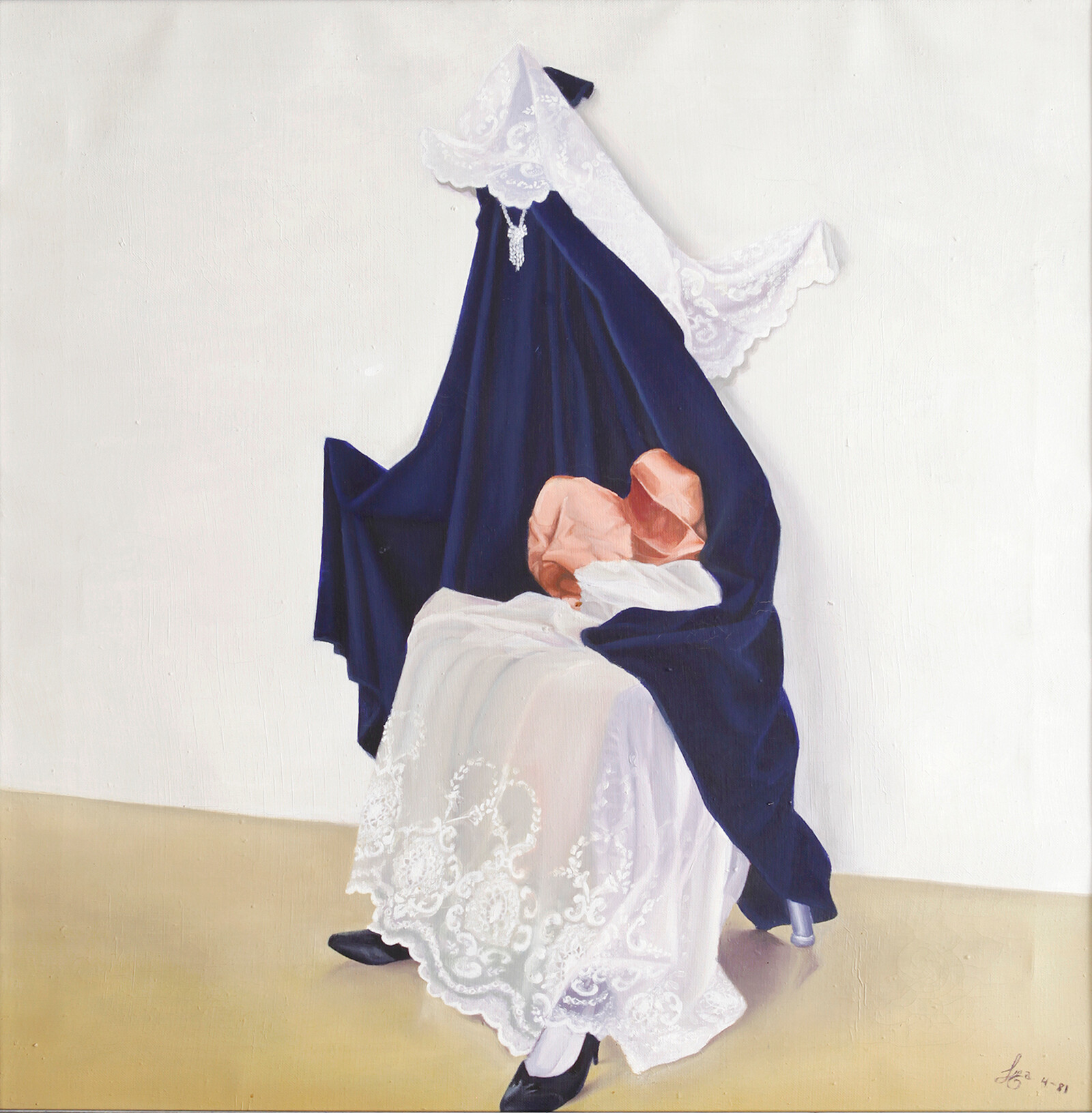 Pushing against the ways in which trans and functionally diverse bodies have been considered as “other” and “freak,” works by Lorenza Böttner explored a desire for self-determination. Böttner refused to use prosthetic arms after the double amputations that were performed on her body when she was eight due to an accidental electric shock, and though she changed her name and declared an openly trans fem position, she also decided against undergoing gender affirming surgery to avoid further time in hospital. Böttner’s paintings, drawings, and performance documentation included here (such as an untitled 1981 painting of an empty chair covered in various fabrics and clothes, seemingly introducing Böttner’s body as a ghostly spectre) reveal her use of art as a means of exploring and reasserting how she wanted to be seen and unseen.