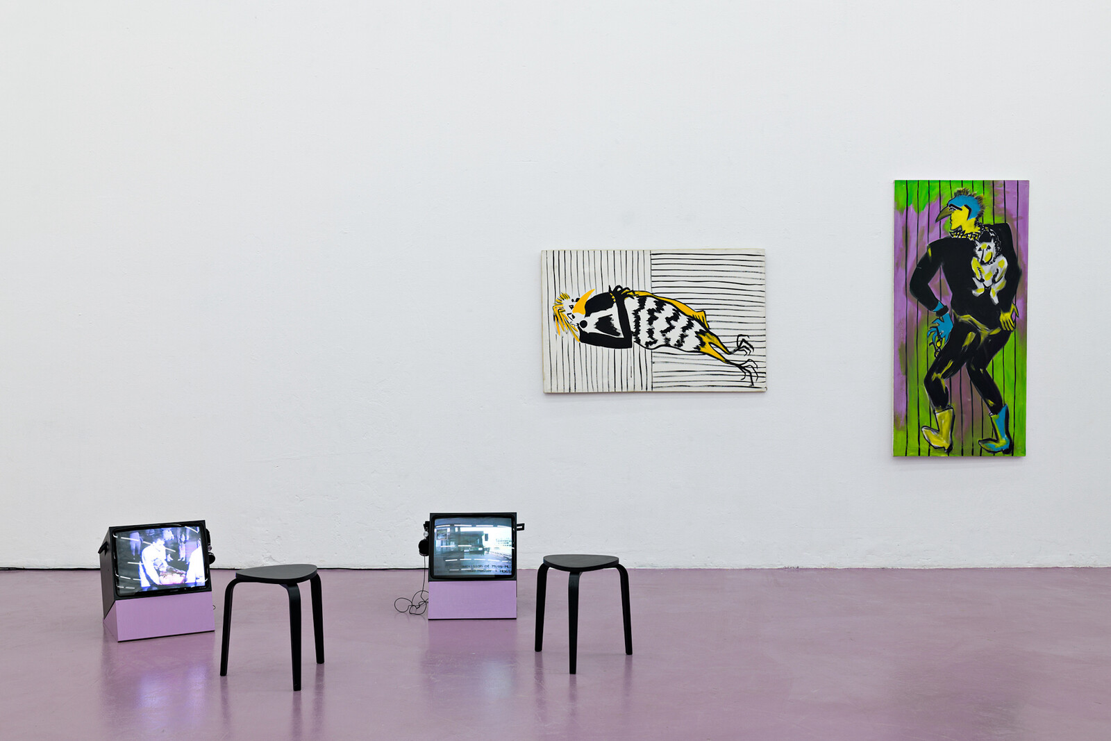 Across the exhibition, the visitor is presented with artists who seek to break free from the forces of control that attempt to capture and present their bodies as normative. Opposite Böttner’s work, Rabe perplexum’s paintings of anthropomorphic ravens allude to the artist’s use of bird-like costumes in their day-to-day life and performances, in a playful refusal of heteronormative gender categorizations. By critically and aesthetically probing these acts of concealment and revealing of the body, “Substitutes” avoided appropriating trans and queer narratives or reducing them to questions of visibility and representation. Instead, it historicized the presence and relations of these bodies in time without relying on oversimplified versions of their truths, providing a powerful resistance against culture wars that wish to relegate these lives to the diminished status of an inconvenient “new” phenomenon.