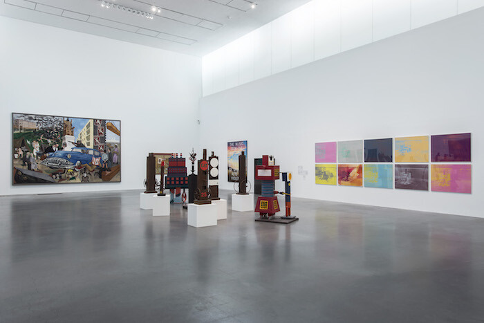 Indeed, it’s remarkable how many of the most fêted works in the collection have been, if not relegated, then at least removed from the pantheon and asked to battle it out with less celebrated peers. Hung close to, indeed in the firing line of, Roy Lichtenstein’s exultant Whaam! (1963), Beatriz Gonzalez’s Pop-inflected indictment of government corruption and decadence in Latin America (Interior Decoration, 1981) reminds us that the United States’s military and economic hegemony in the second half of the twentieth century had consequences beyond comic books and Elvis. Piet Mondrian’s Composition C (No.III) with Red, Yellow and Blue (1935), meanwhile, is reinvigorated by its proximity to the Neo-Concretists in a room dedicated to the artists and ideas to emerge from Brazil in the 1950s. Labeled “A View from São Paulo,” this is one of a number of displays attempting to refocus art historical attention on cities (Buenos Aires and Tokyo also feature) beyond the traditional centers. The selection of locations is conservative and the elevation of such figures as Lygia Clark, Lee Ufan, and Hélio Oiticica hardly constitutes a risk, but these are steps, however small, in the direction of a more multipolar understanding of contemporary culture.