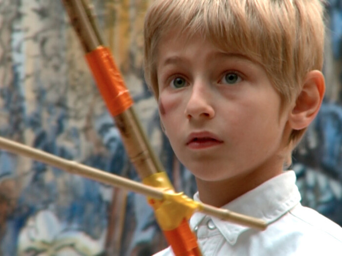 While Carbotta and Reynolds’s works position the self as the subject of endeavor, Céline Condorelli’s Models for a Qualitative Society (2016), which includes a group of colorful spinning tops placed on the floor and four framed inkjet prints of archival documentation and text, highlights historical and social case studies. The artist’s research drew on three utopian visions of public playgrounds realized by architects during the 1960s: Palle Nielsen in Stockholm, Aldo van Eyck in Amsterdam, and Lina Bo Bardi in São Paulo. Another pedagogical model plays out in Husni-Bey’s 2011 video Postcards from the Desert Island. Centering on a three-week workshop with a group of children from a self-run elementary school in Paris, it vividly documents how they imagine, negotiate, and ultimately decide how to govern their school-hall-turned-desert-island. Both works explore forms of human interaction that might, as Condorelli’s title suggests, help build a more equitable society.