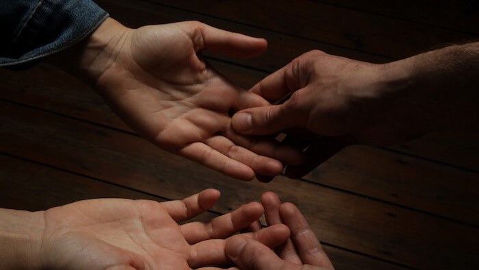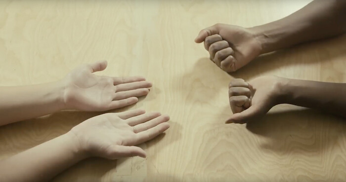 Two pairs of hands play a game of cat’s cradle, forming a star from a loop of string; viewers may imagine one person pulling the string while the other interprets their instructions. This photograph, which appears on the cover of the booklet accompanying the group exhibition “Te toca a tí” [It’s your turn] at the Espai d’art contemporani de Castelló (EACC), epitomizes the exhibition’s conceptual framework. Curated by Laura Vallés Vílchez and including works by ten artists, the show asks whether a gallery can become a site of negotiation, and if so, in what ways it can be re-signified.