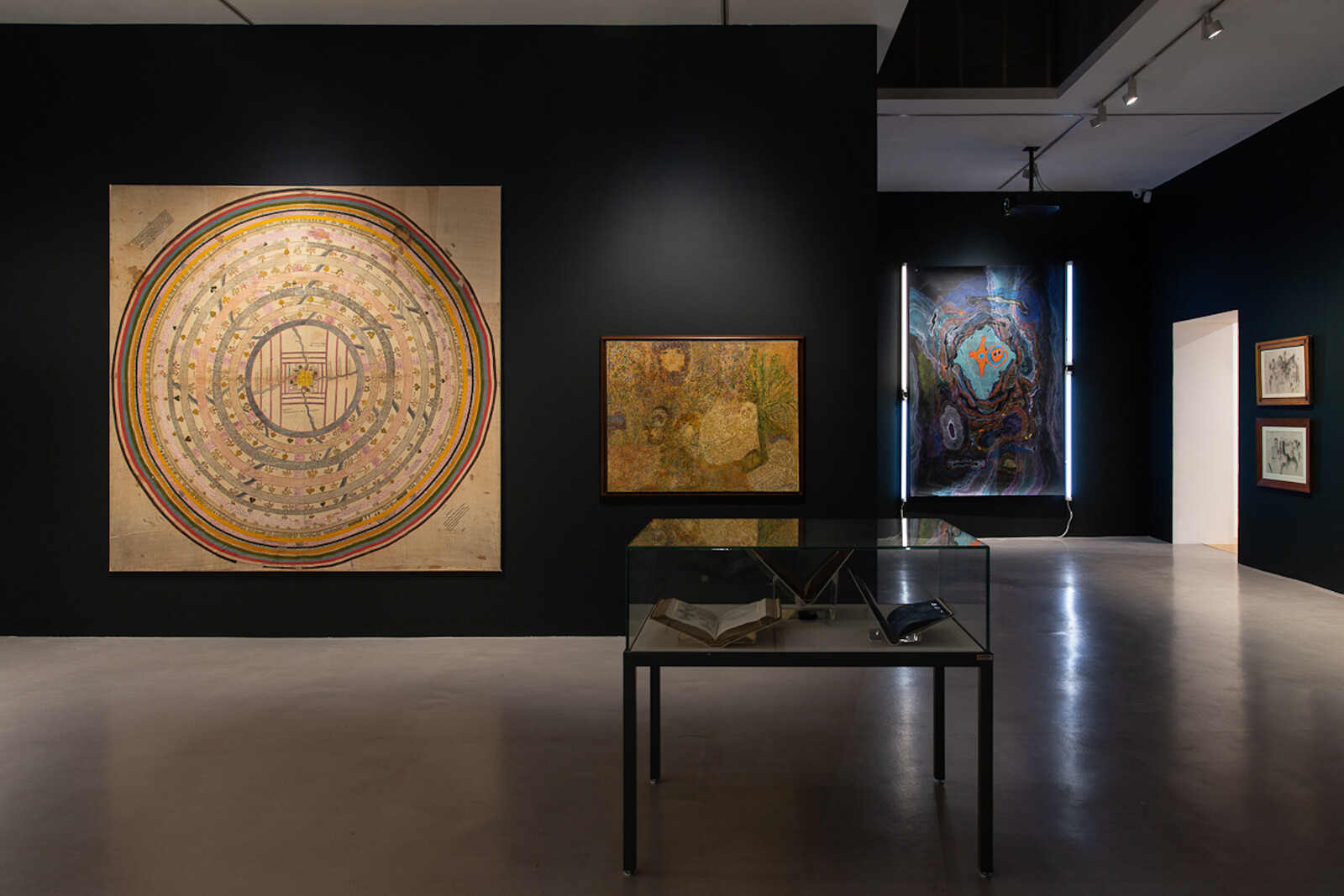 Upstairs, visitors encountered works by Wendy McMurdo, Annalee Davis, Lyndsay Mann, and Lee Mingwei. One of Davis’s series of mixed media drawings, As if the Entanglement of our Lives did not Matter (2020), depicts two figures, a man and a woman, standing together, or rather floating rootless (for they have no feet), with a baby on the chair before them. It is a portrait of a family prevented from living together by the colonial policing of relations between men and women of different races. Behind each figure springs a green fan of sugarcane. Across them trail roots and tendrils—not the fixed genealogy of the family tree, but a frayed connection teased out from oral histories and family archives. Drawn from photographs, these three faces remain grey amid floral patterns, flattened by time. In the gallery, a portrait of a plantation owner was hung adjacent.