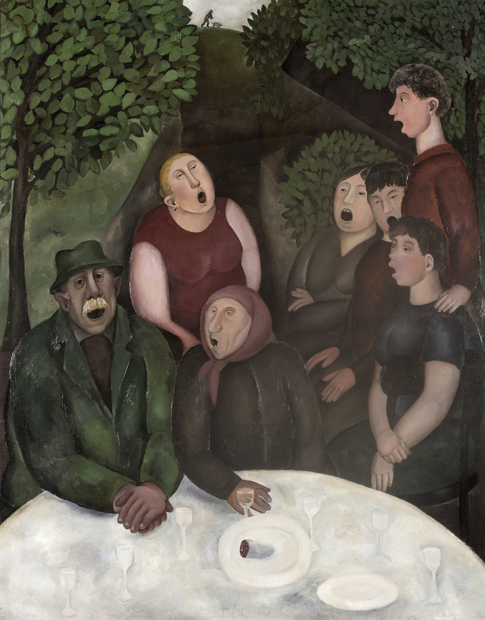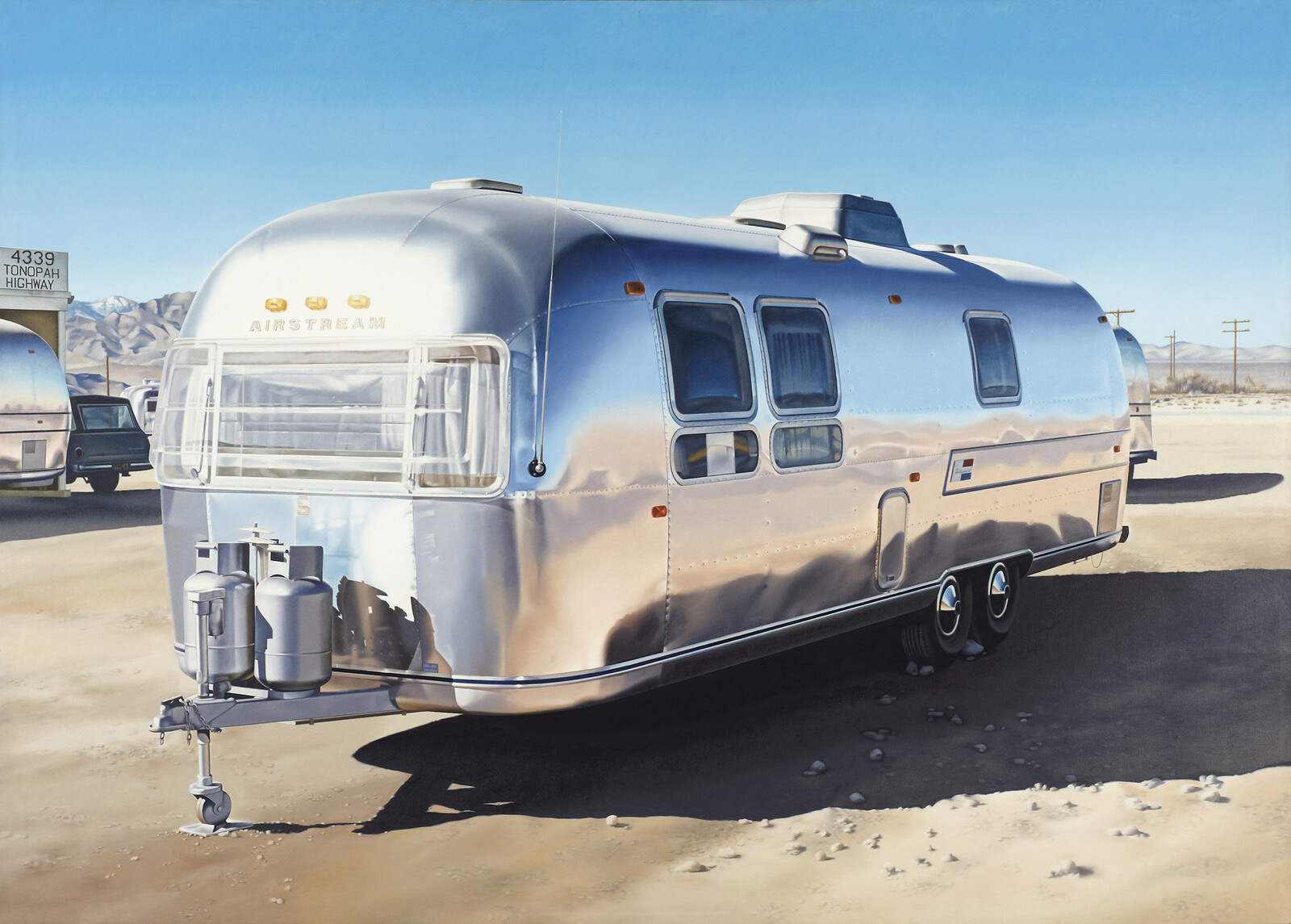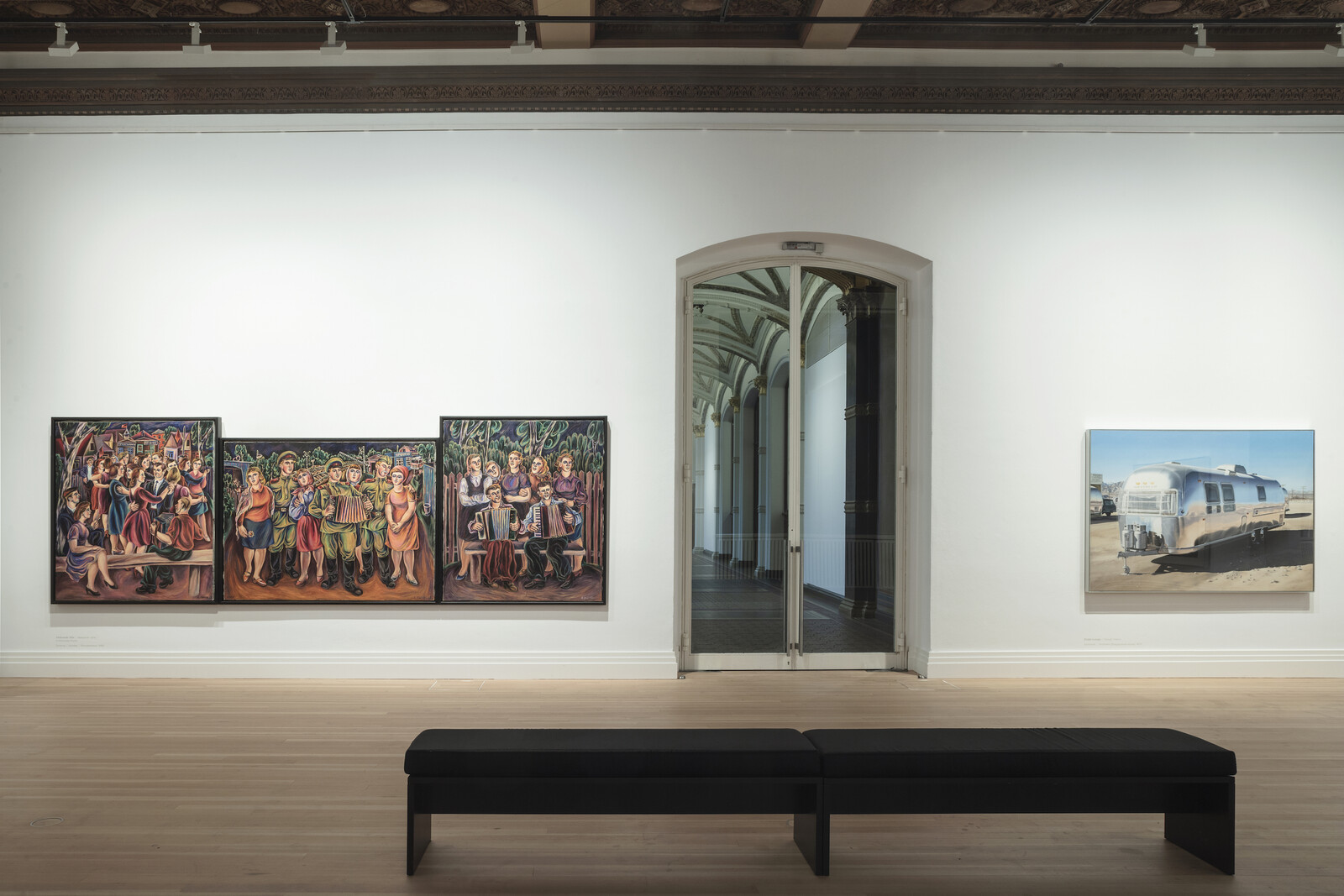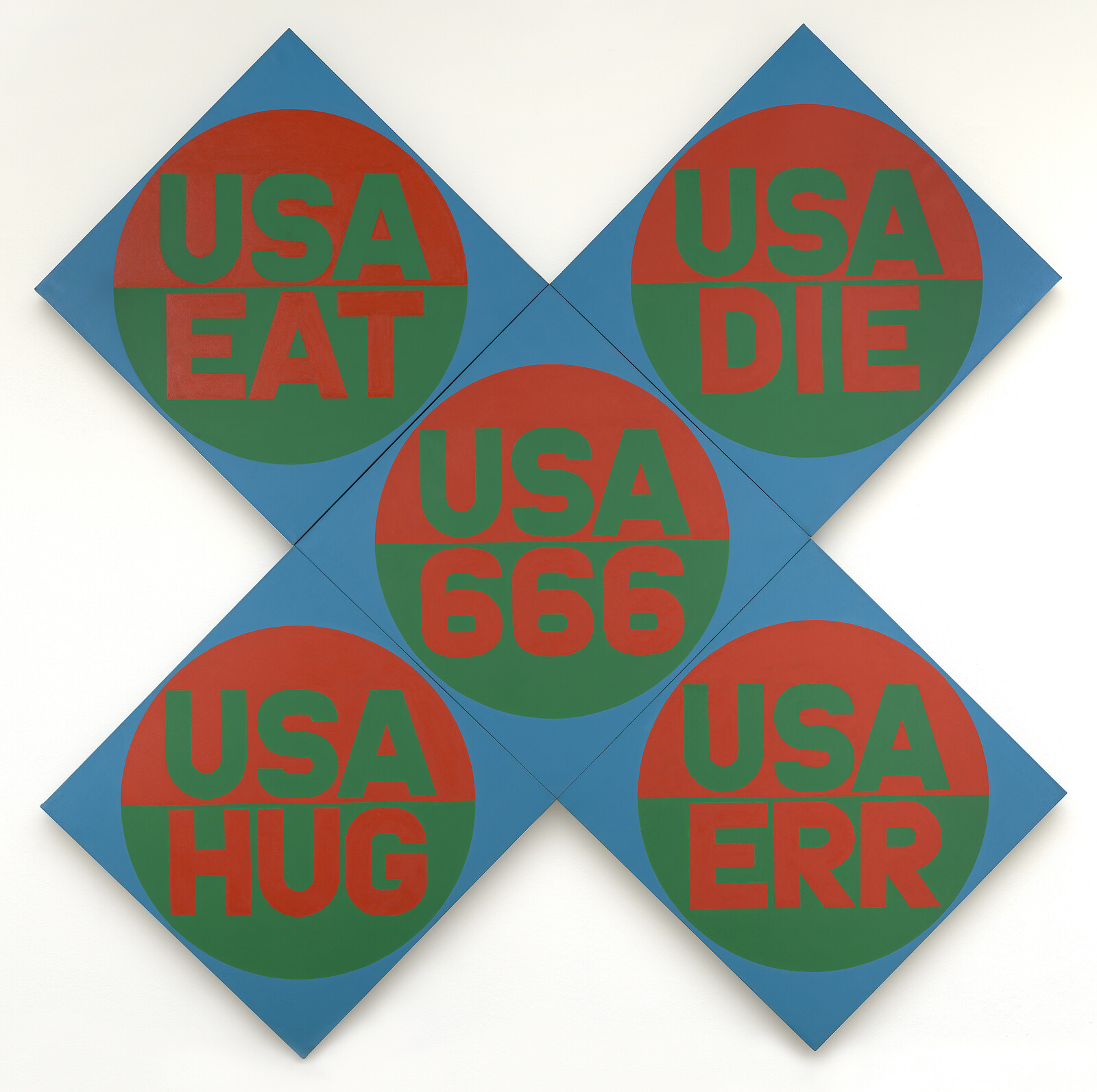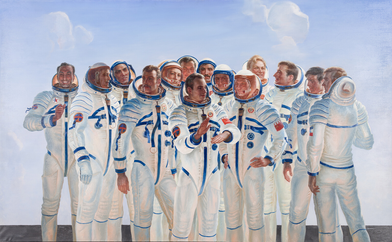 The idea is simple: by placing artworks from rival nations adhering to two putatively opposed ideological systems in “dialogue” (that is, in spatial proximity) we can detect commonalities between and reversals of received wisdom about the systems themselves. The juxtapositions are organized according to sub-themes such as War (where the machine gun in Roy Lichtenstein’s Takka Takka, 1962, is in dialogue with the corpses in Boris Nemenskiy’s On The Nameless Height, 1961), Iconography (where the traffic signs in Robert Indiana’s USA 666, 1971, are in dialogue with the Soviet crest in Erik Bulatov’s Sunrise or Sunset, 1989), Leisure (where Natalya Nesterova’s Singers, 1969, are in dialogue with Ralph Going’s Airstream, 1970), Space Flight (where Lowell Nesbitt’s Splash Down, 1969, and Lift-Off, 1970, are in dialogue with Jury Korolyov’s Cosmonauts, 1982), and so on.