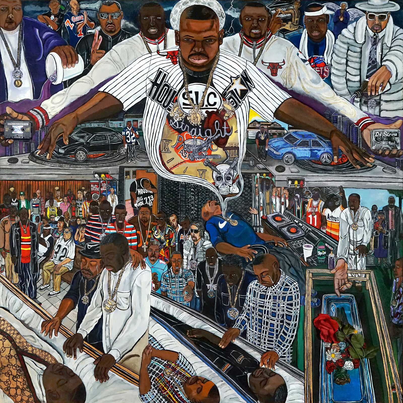 This is not the first exhibition to focus on the American South in recent years. In 2016, “Southern Accent” opened at the Nasher Museum: a thirty-year survey show that treated the region as an “emotional idea,” a term borrowed from William Faulkner. What’s new about the VMFA exhibition is its focus on the particularities of Black culture in the region, particularly the ways in which musical and visual histories are entangled. “The Dirty South” proposes a look back after the Great Migration—during which over six million African Americans left the South for the North—at a time when figures such as journalist Charles M. Blow have argued for a reverse Great Migration. In doing so, it embraces the South’s vibrant mixture of cultures perhaps best characterized by the grinding slowness of its swampy summers, as evoked by the slowed-down, “chopped and screwed” hip-hop pioneered by Houston’s DJ Screw.
