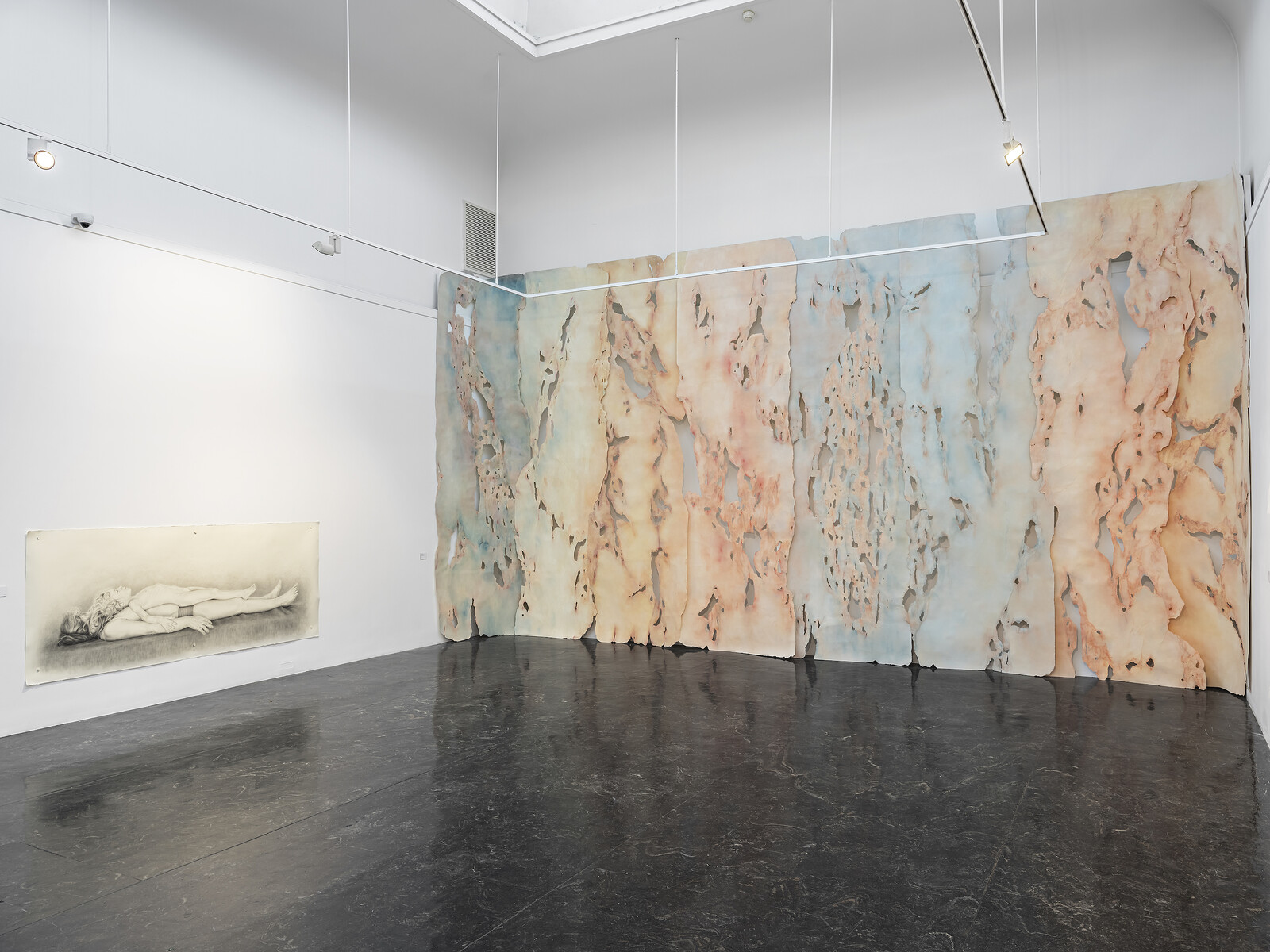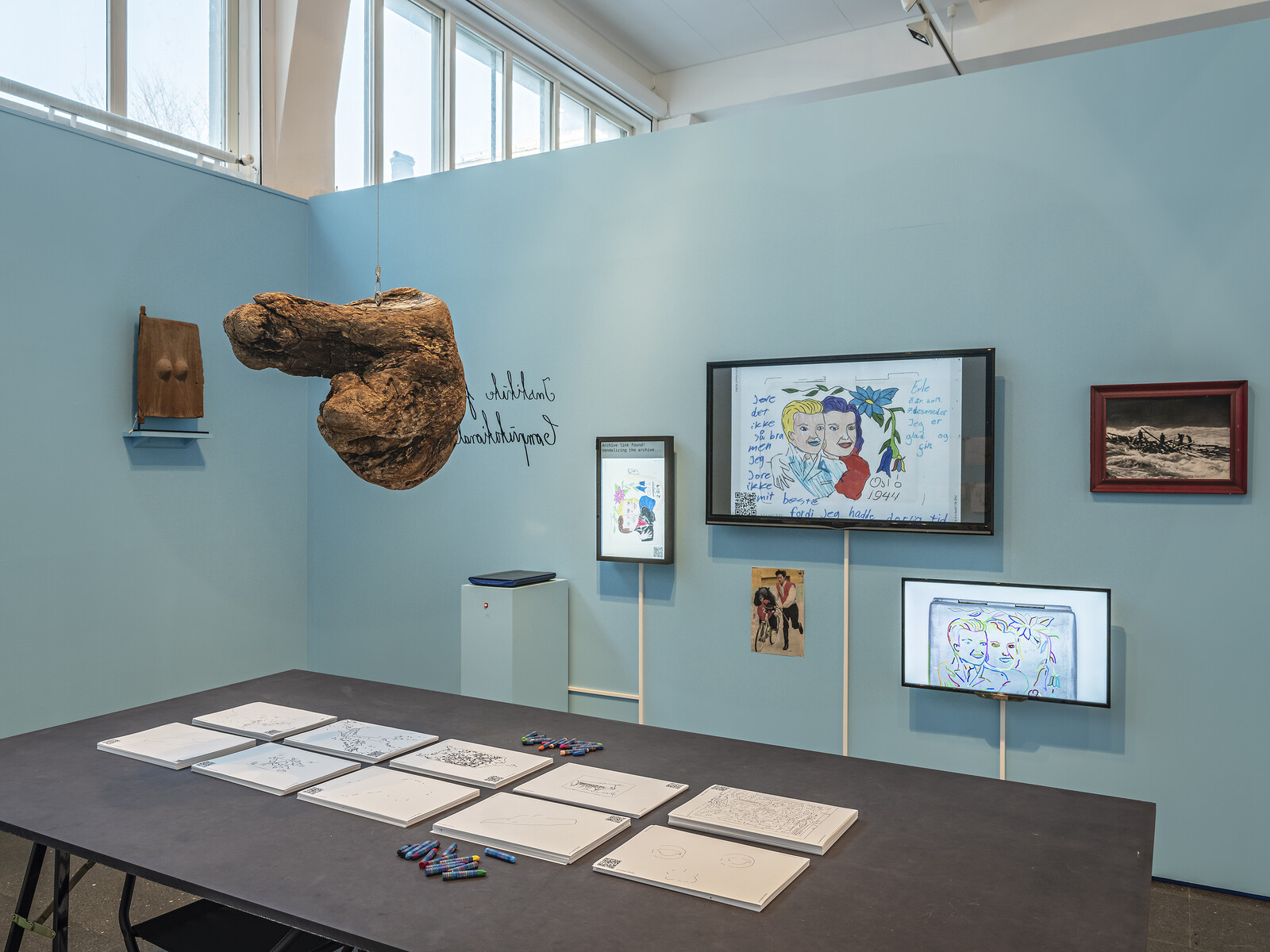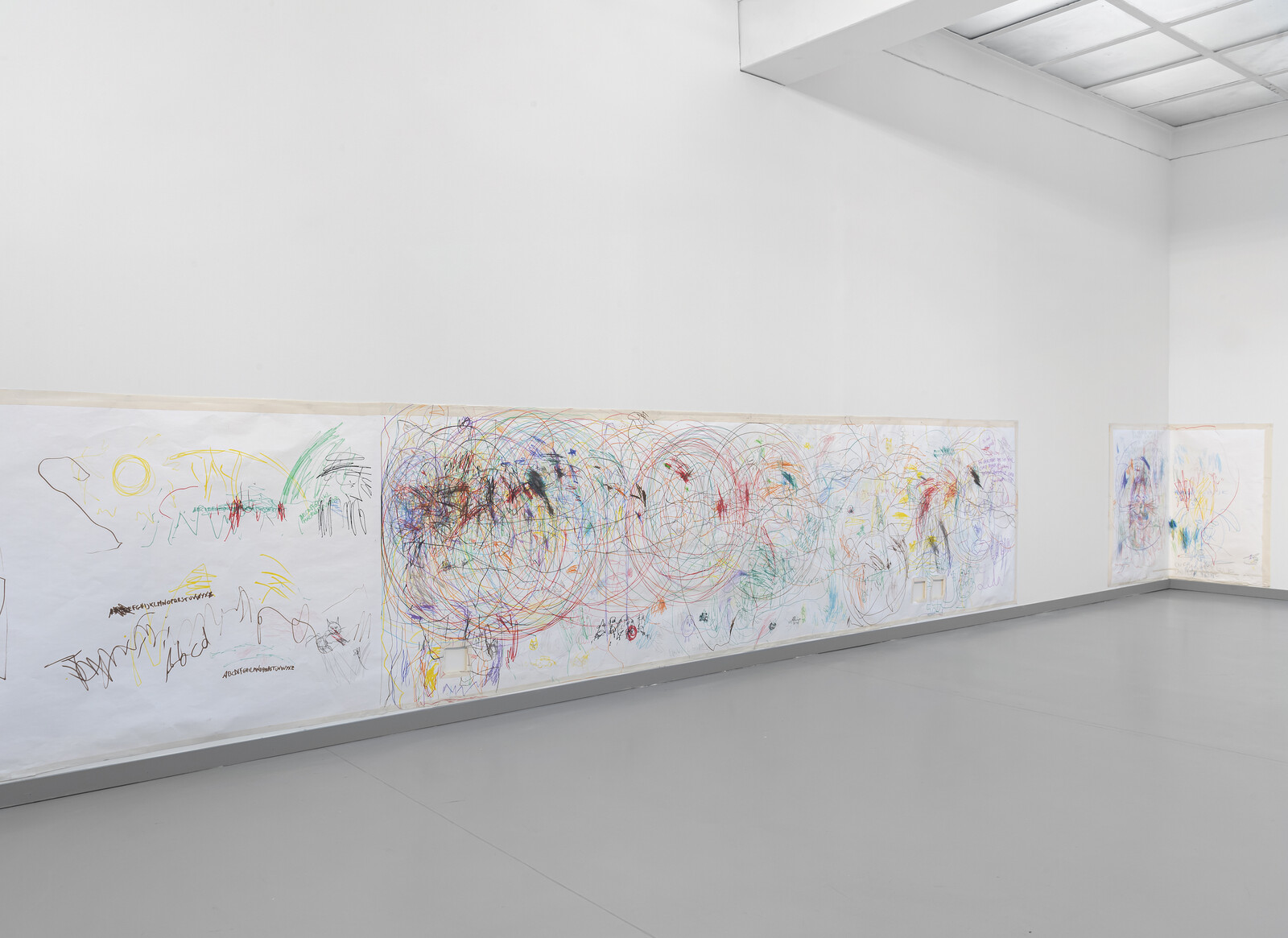 In contrast, Marthe Ramm Fortun and Andrea Galiazzo’s collaborative exhibition “Leda and the Swan,” on show at The Drawing Association in the city center, displays the early stages of human life in the form of drawings the couple’s toddler made on the walls of the their shared studio. While these drawings—both pastime and education, training and compulsion—support the Triennial’s claim that drawing is an innate activity, the colorful scribbles are presented by the artists less as evidence of children’s self-expression than of the negotiation of the double role of being an artist and a parent. In contrast to the universalizing impulse evident in its overarching theme, this Triennial is at its strongest in such moments, when individual works address particular situations—be it Jiménez Ojeda’s idiosyncratic excavation of her past, Nygård’s touch-drawings, or Ramm Fortun and Galiazzo’s logistics of parenting.
