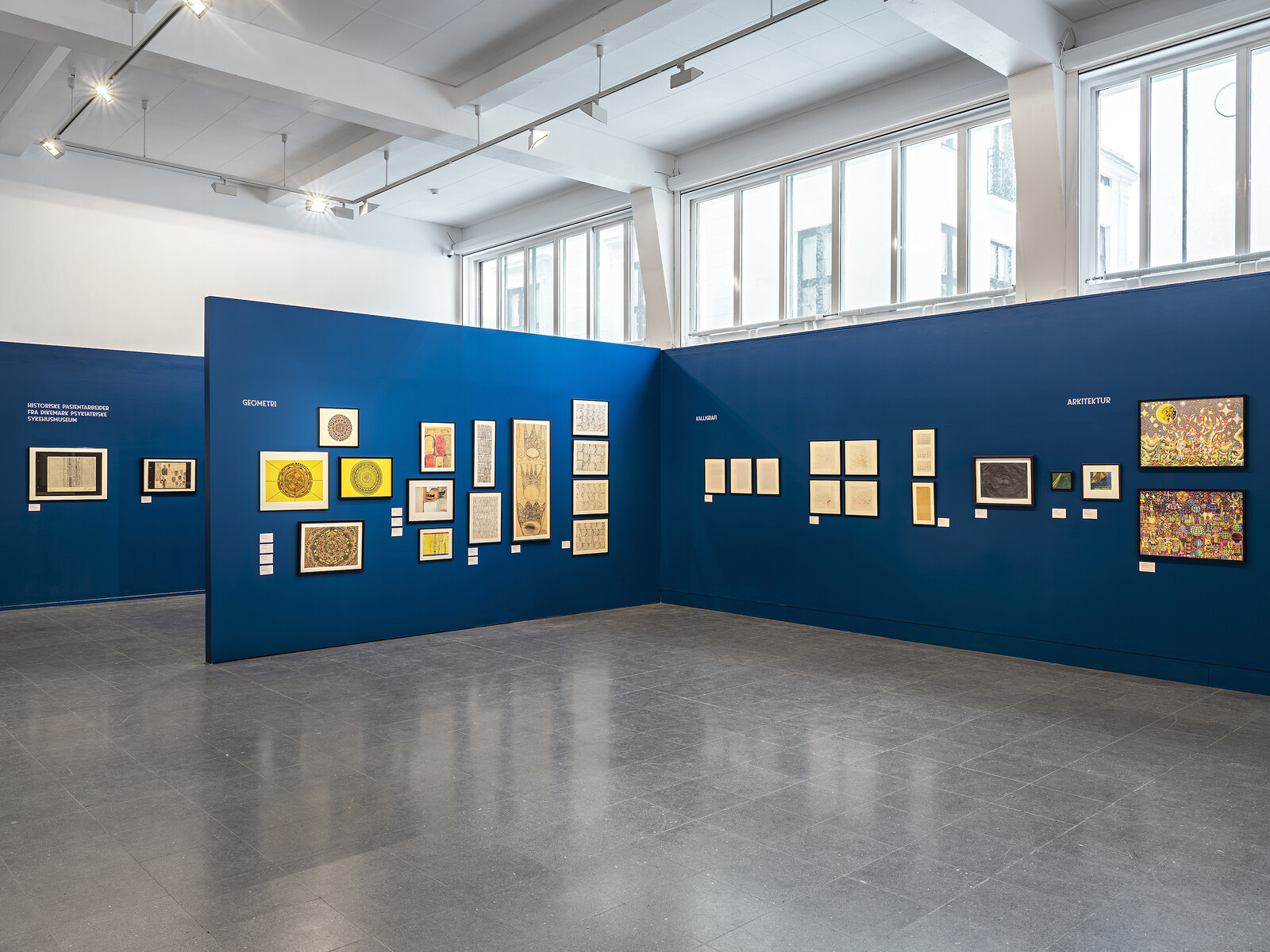 Included in the Triennale’s extended program are three satellite exhibitions. “Ornaments of the Soul: Ornamental Drawings in Norwegian Outsider Art,” curated by Simone Ritter and exhibited on the ground floor of Kunstnernes Hus, features 30 ornamental drawings from the Trastad Collections, a museum of work by outsider artists. They are presented alongside works made by anonymous patients at the Dikemark psychiatric hospital in Asker, close to Oslo, in the 1920s. Though the patients’ identities are protected, the question of whether or not they consented, or could consent, to the display of their drawings in an art exhibition, remains unanswered. On show on the same floor is “The Archive’s Arabesque.” Curated by Ellef Prestsæter, the exhibition is a continuation of Prestsæter’s work with the artist Guttorm Guttormsgaard, who passed away last October, and his collection of artworks and objects, which includes handcrafted tools, engraved tobacco boxes, and talismans. For this exhibition, Prestsæter invited younger artists make new works in response to the archive. Guttormsgaard is also represented back in the main exhibition, but as an artist rather than collector. He drew a self-portrait every day: hundreds of them are presented in the Triennial behind large glass panes, depicting the pensive artist as he neared the end of his life.